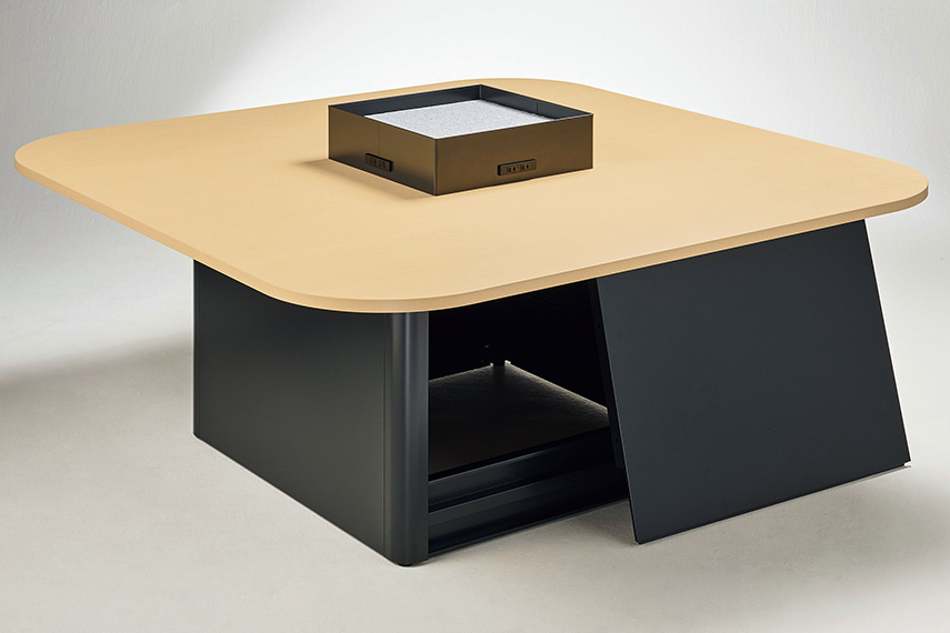 幕板として足元のプライバシーを確保できるボックス脚は、配線のメンテナンスなども機能的に行えます。