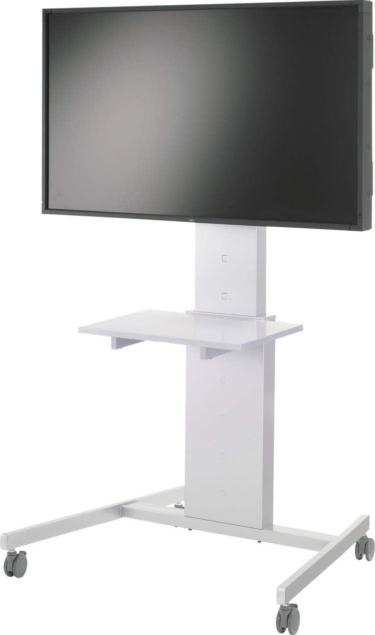 ディスプレイ取付位置と棚板取付位置は空間の広さに応じて高さ調節が可能です。ディスプレイを3段階の高さH900、H1150、H1400㎜(画面中央高)のいずれかで取り付けられます。棚板はディスプレイの高さを固定したまま3段階の高さH325、H575、H825㎜のいずれかで取り付けられます。