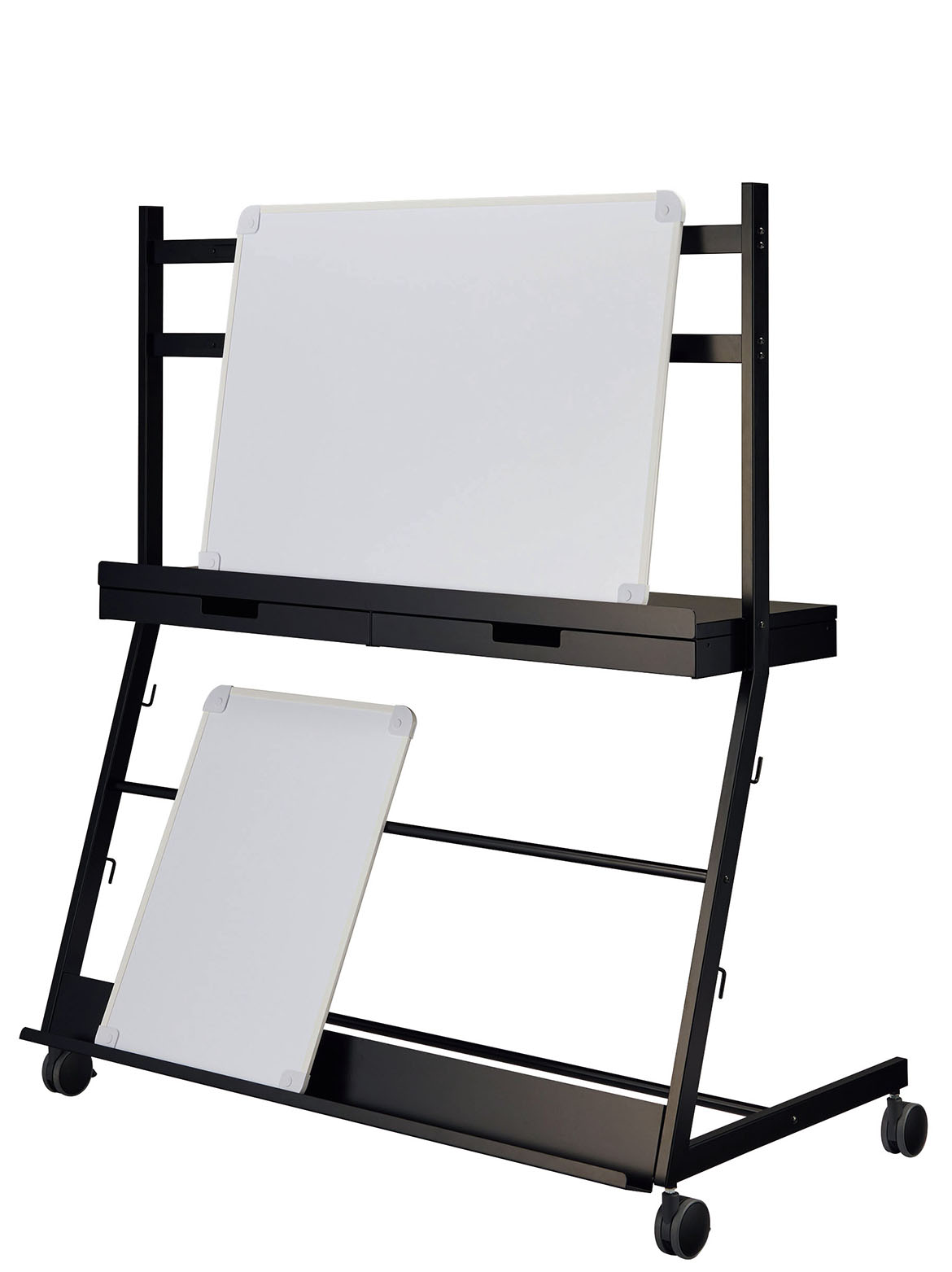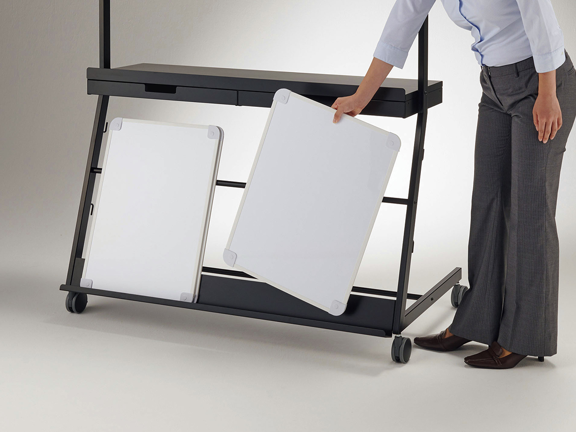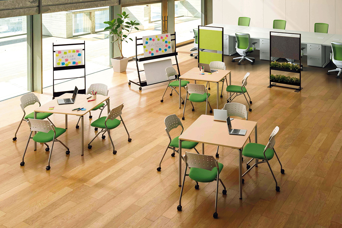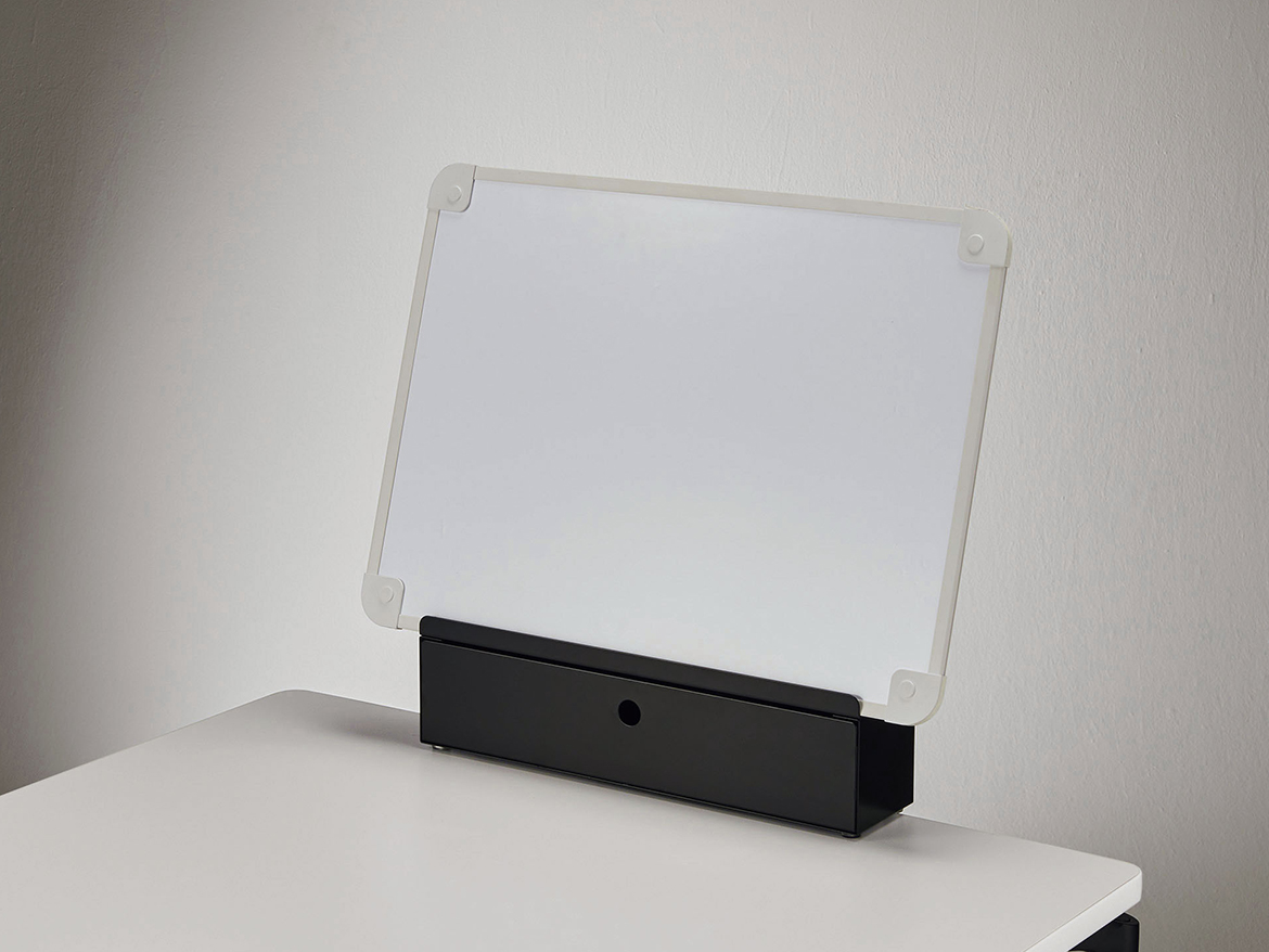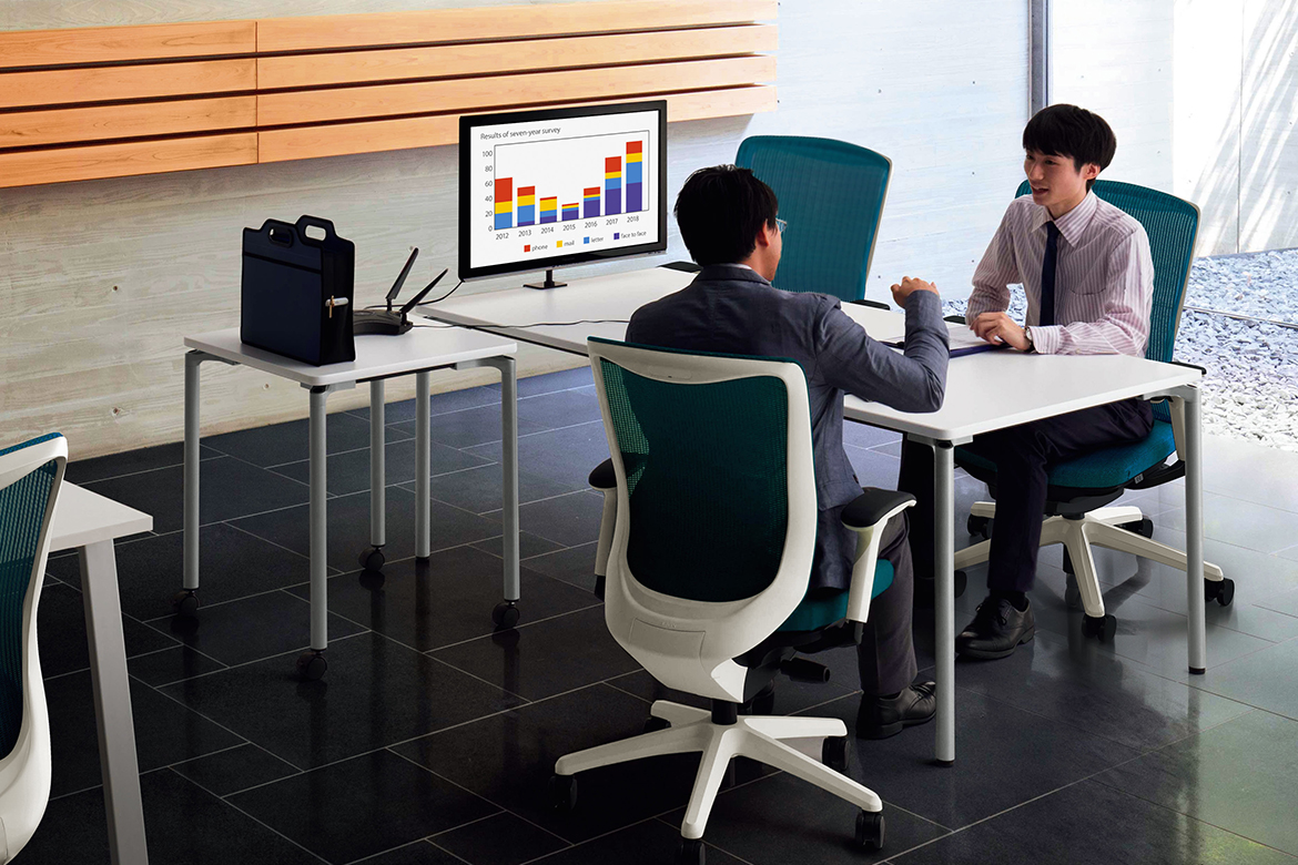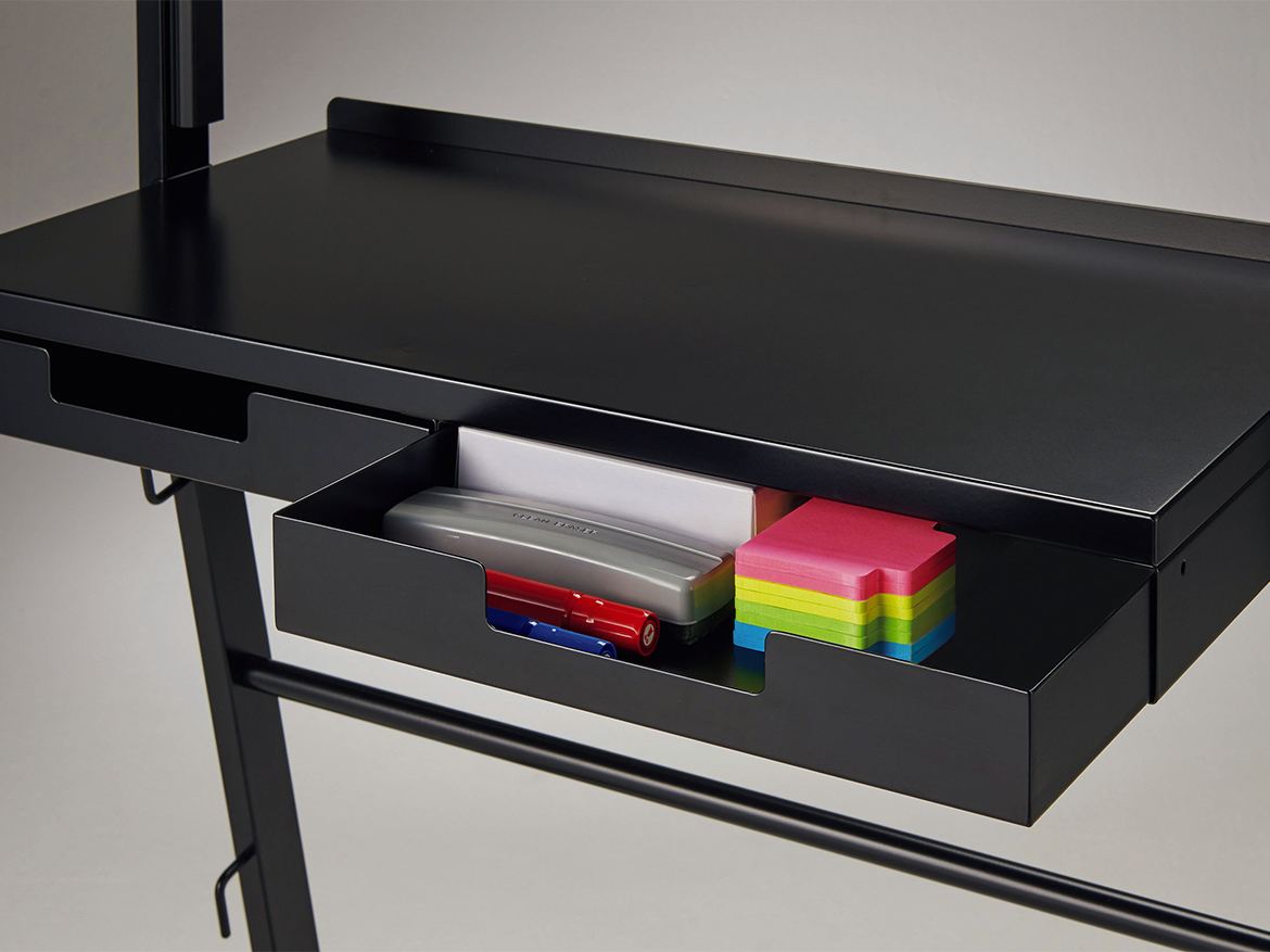 ミーティングに必要な小物などをスッキリしまえる引出し付です。