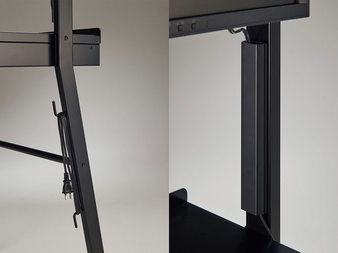 配線カバーとケーブルフック付ですので、コード類をすっきりまとめられます。