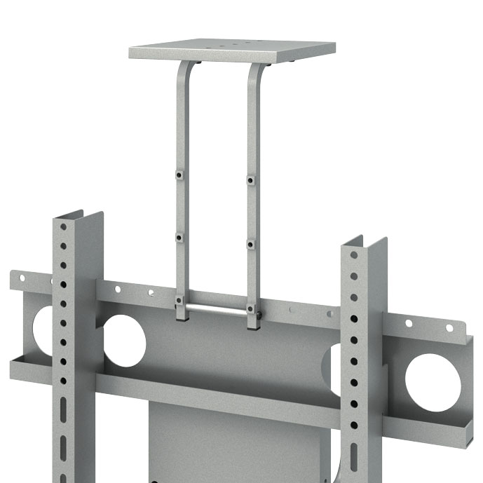 ディスプレイ取付位置と棚板取付位置は空間の広さに応じて高さ調節が可能です。ディスプレイを3段階の高さH900、H1150、H1400㎜(画面中央高)のいずれかで取り付けられます。棚板はディスプレイの高さを固定したまま3段階の高さH325、H575、H825㎜のいずれかで取り付けられます。