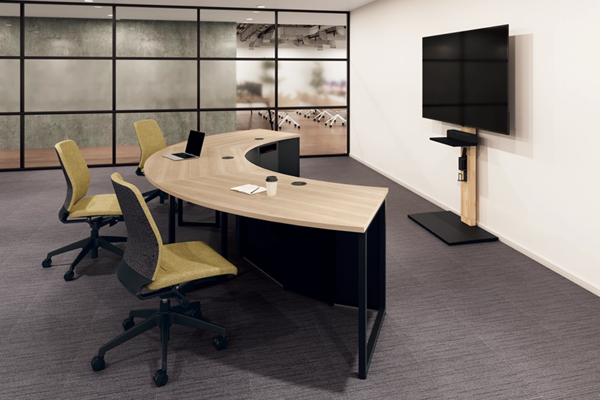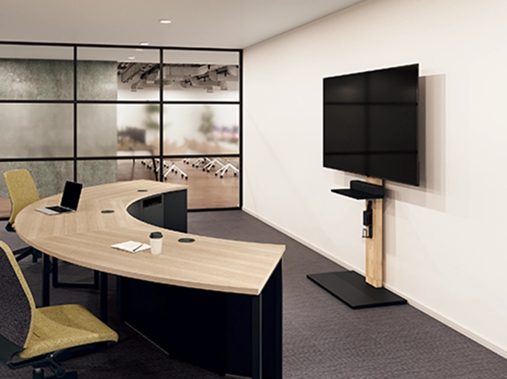 OAフロア内に、アンカー固定および収納可能な専用ベースとカバーをご用意しています。すっきりとした見た目で安定性が向上します。
