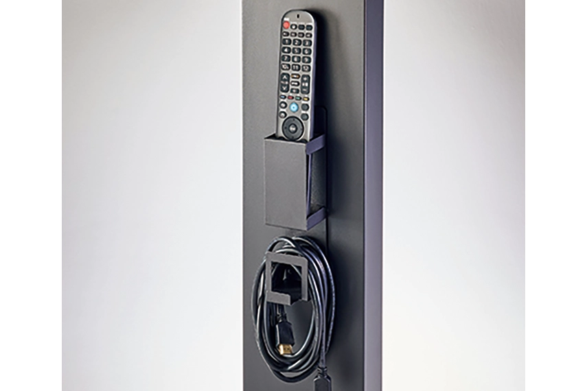 リモコンやHDMIケーブルなど、日常的に使用する備品をまとめて収納できます。