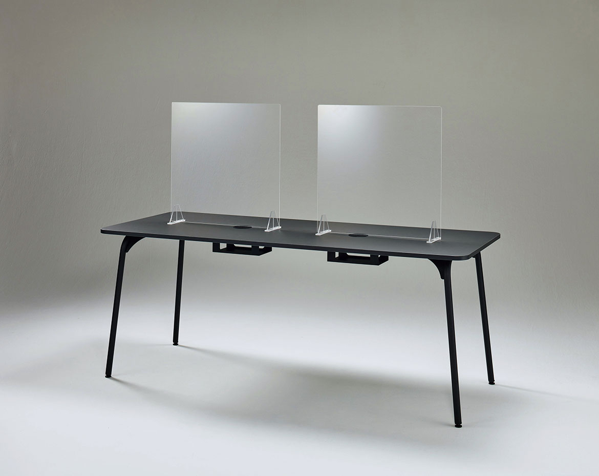 角を大きくとった天板と斜めに伸びた細身のパイプ脚が優しさを感じさせ、リラックスした空間を演出します。