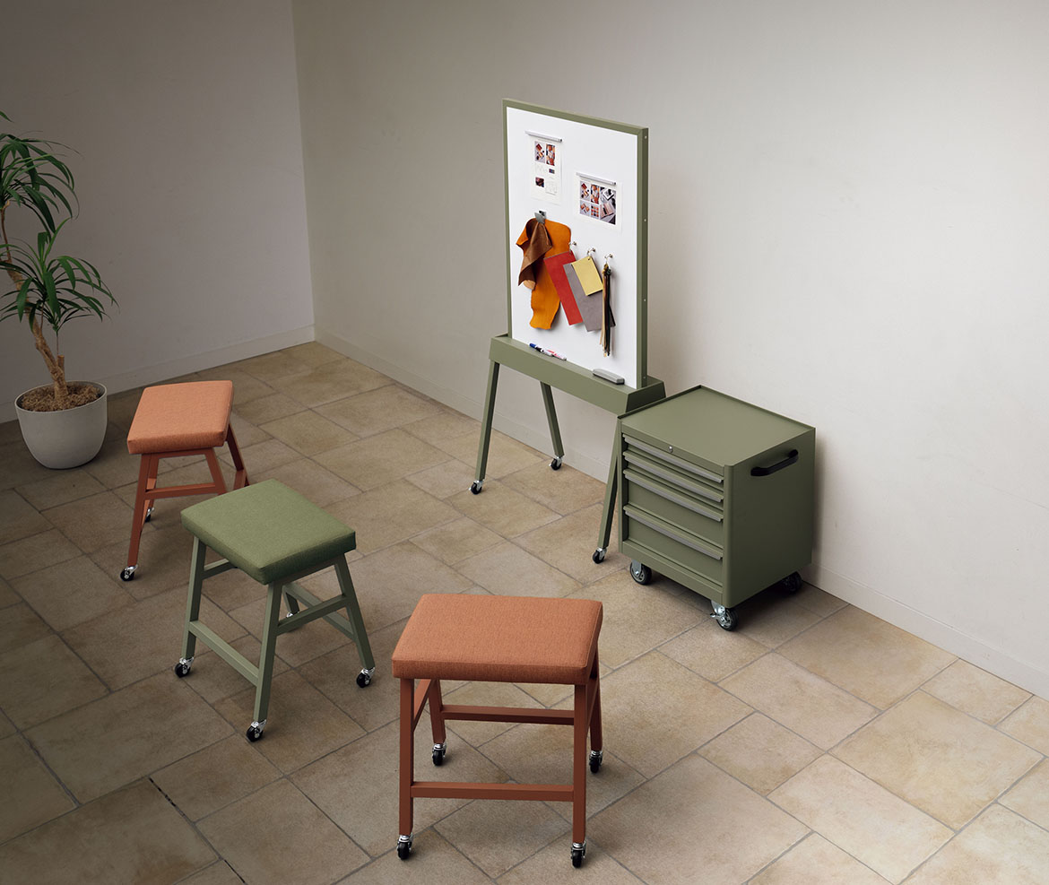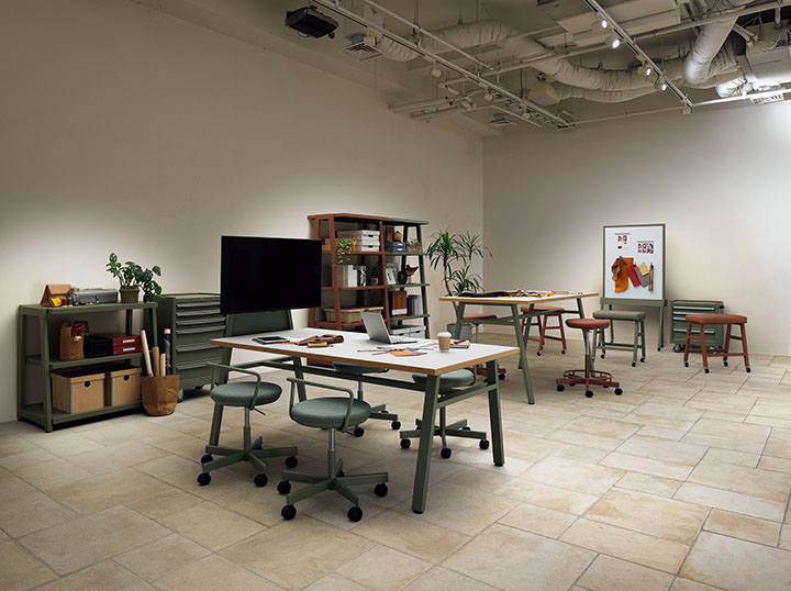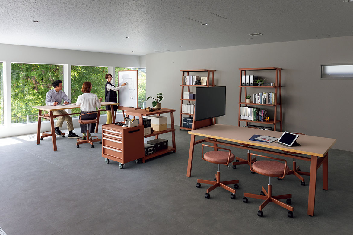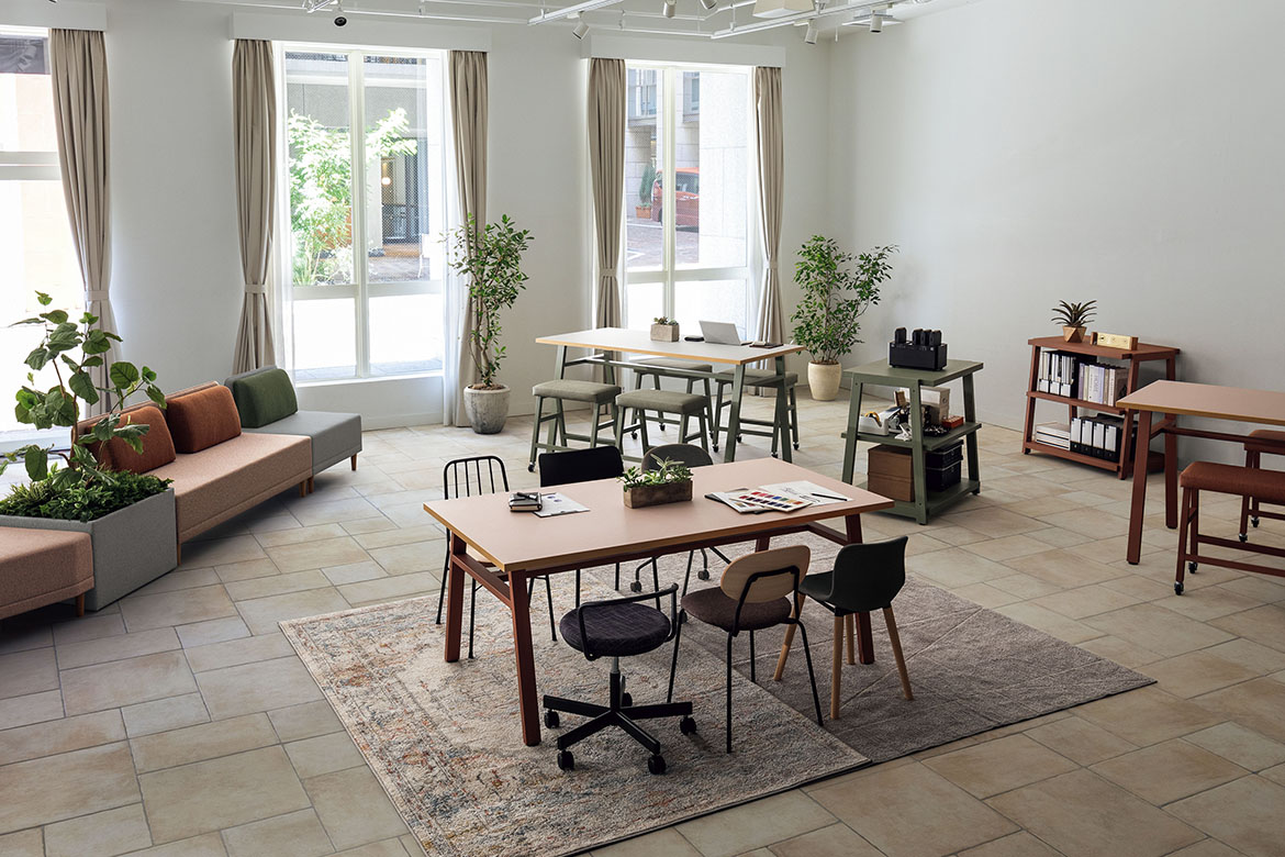 実際に自らの目でモノを見て手で触ることで実感したり、仲間と意見や思いを交わすことで生まれるアイディアもあるはず。ラボレは、創作活動をサポートする空間を提案します。タフさとカジュアルさを兼ね備え、多様なワーキングスタイルに対応できる展開になっています。