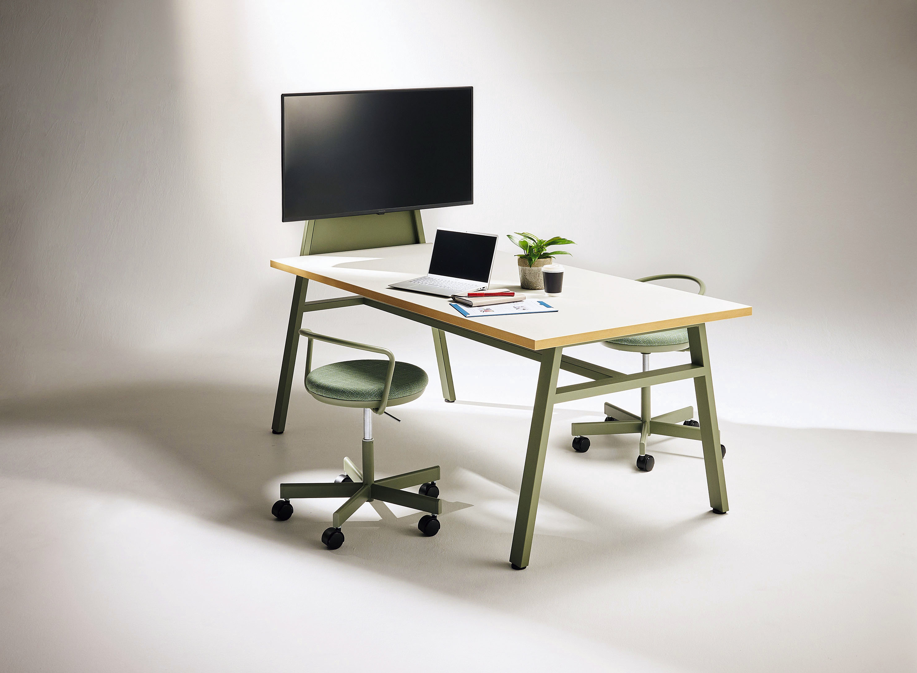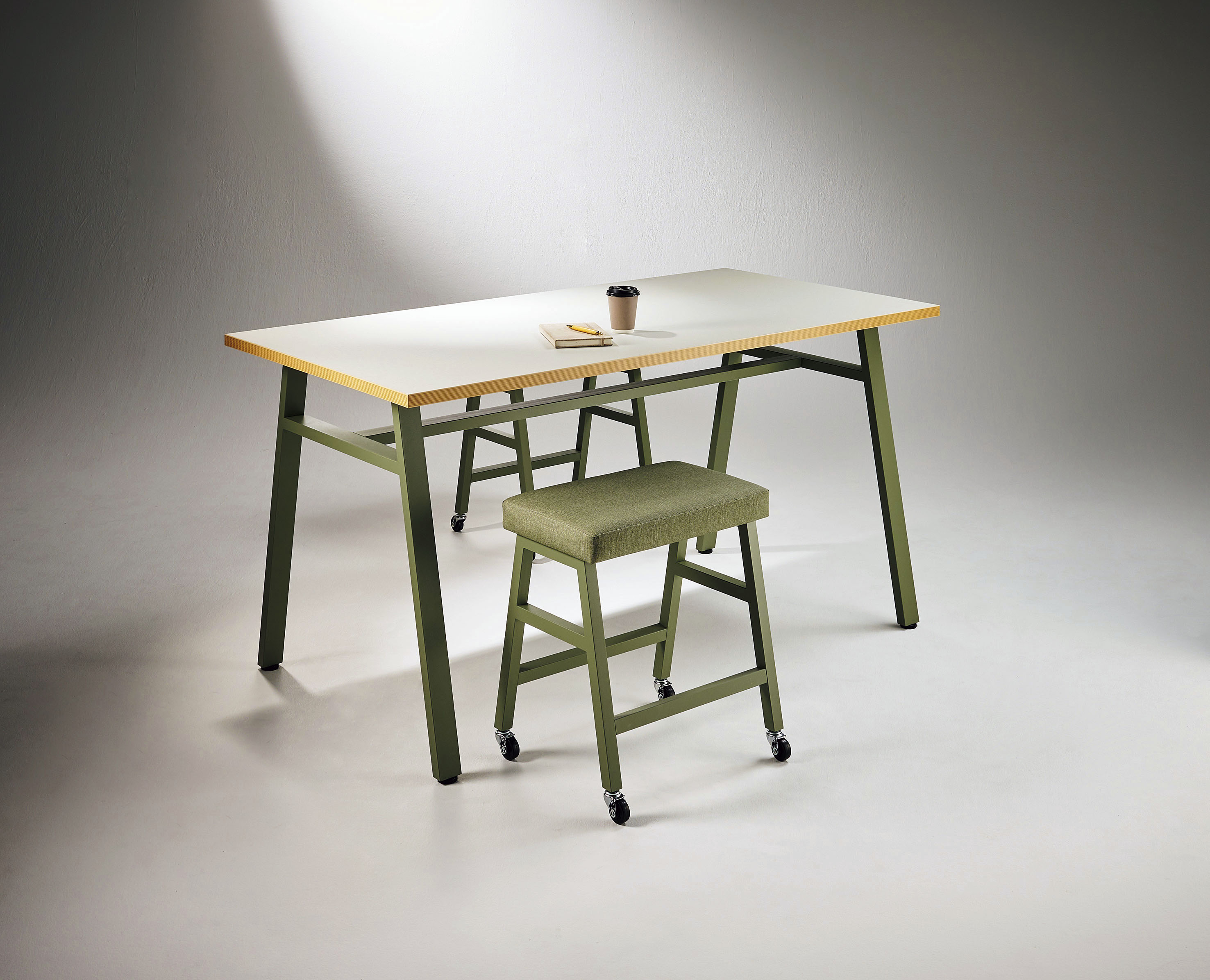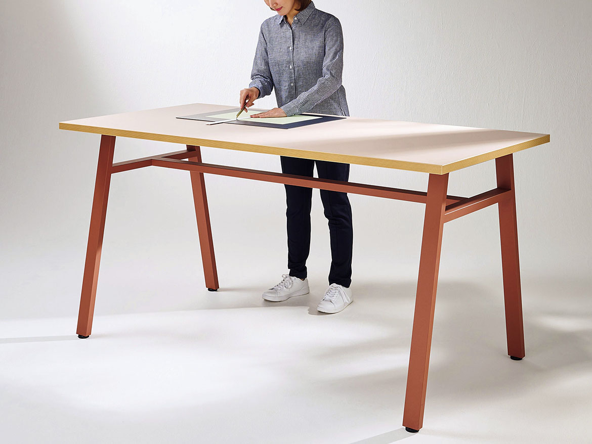 実際に自らの目でモノを見て手で触ることで実感したり、仲間と意見や思いを交わすことで生まれるアイディアもあるはず。ラボレは、創作活動をサポートする空間を提案します。タフさとカジュアルさを兼ね備え、多様なワーキングスタイルに対応できる展開になっています。