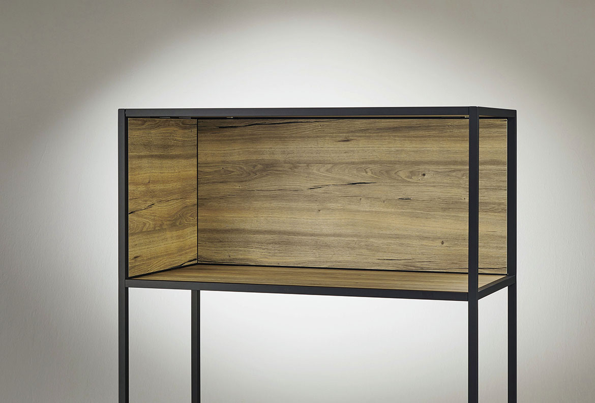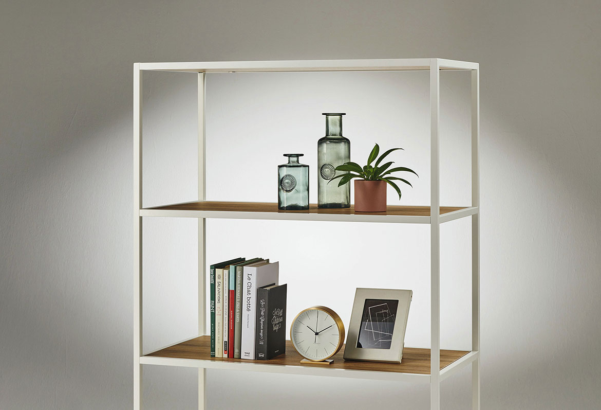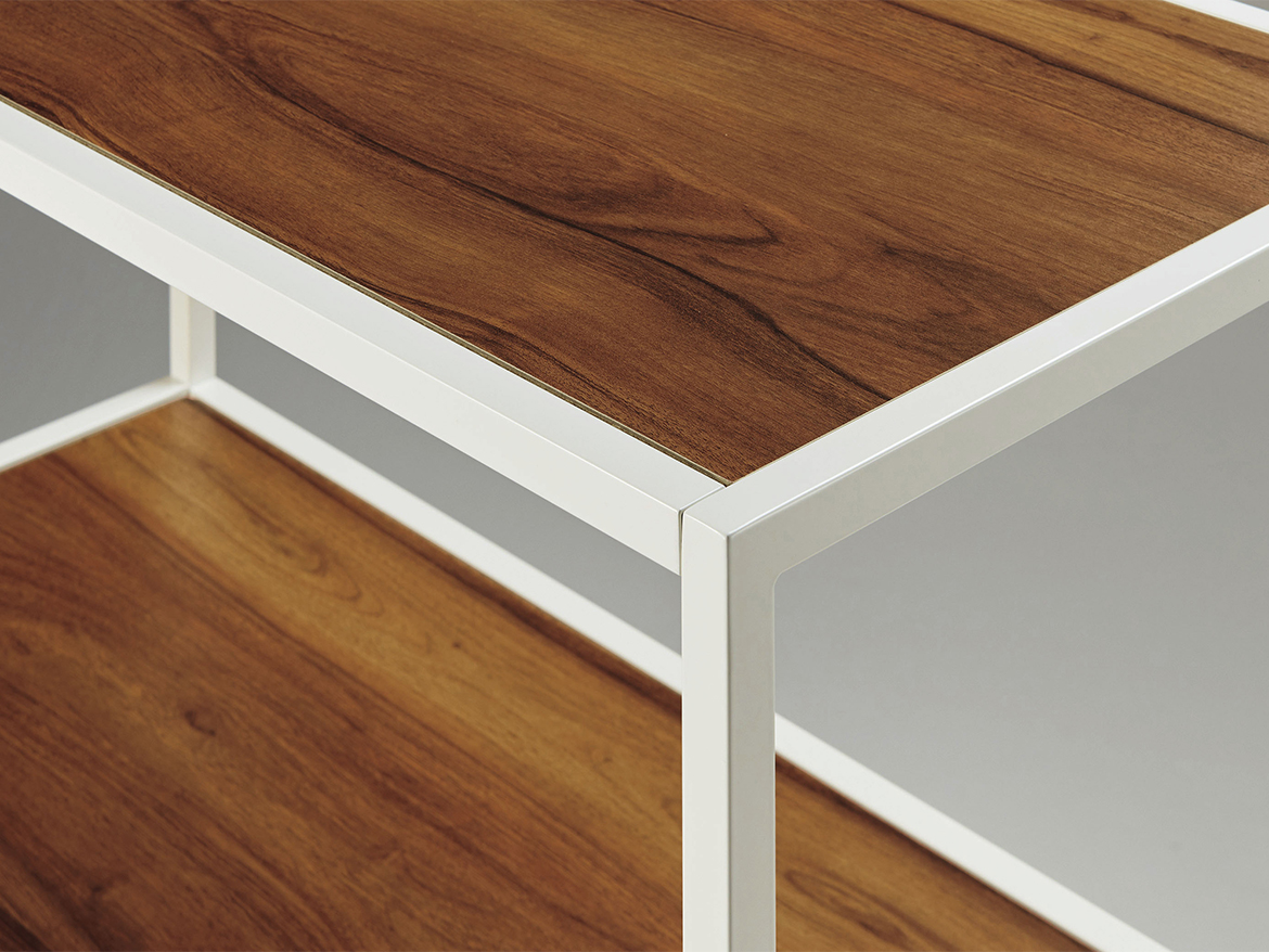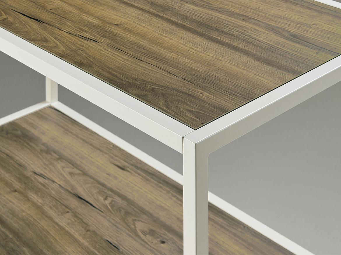 木目調のパネルにより、カジュアルな空間を演出します。1段単位で任意の段に取り付けでき視界を調整できます。