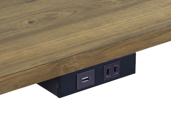 カウンターテーブルには2個口のコンセントユニットが標準装備されておりPCやタブレットの充電が可能です。ミーティング用テーブルではオプションでコンセントユニットをご用意しております。