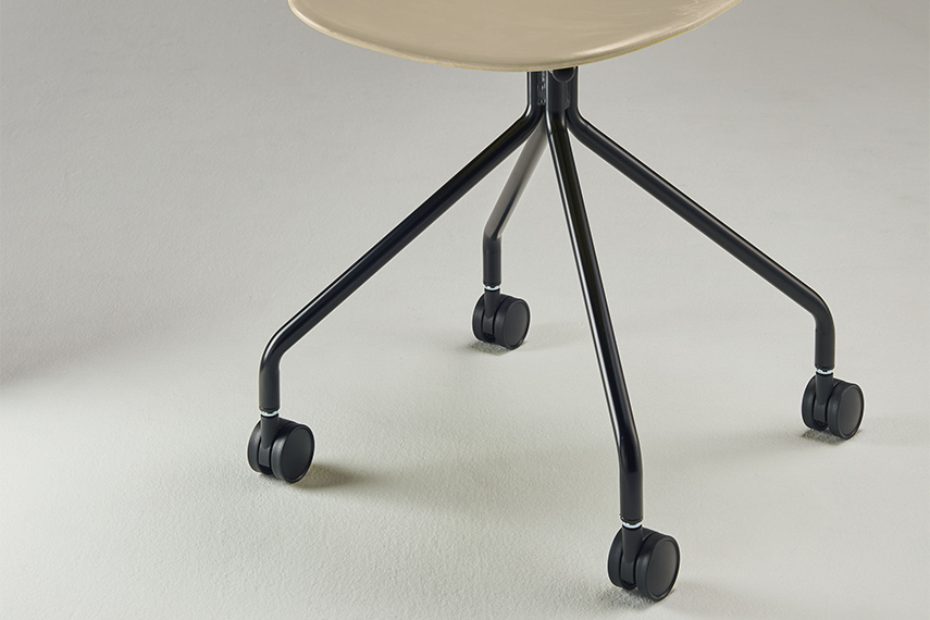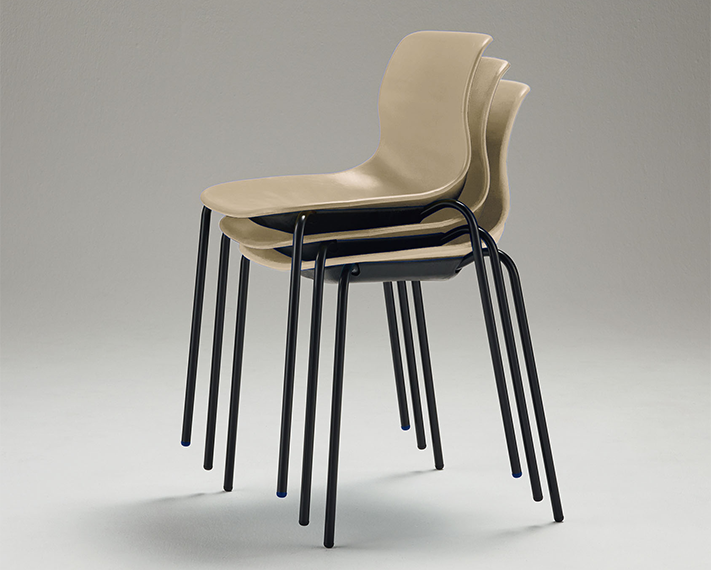 スチール・4本脚タイプとスチール・ループ脚タイプは平積みで4脚までスタッキングが可能です。