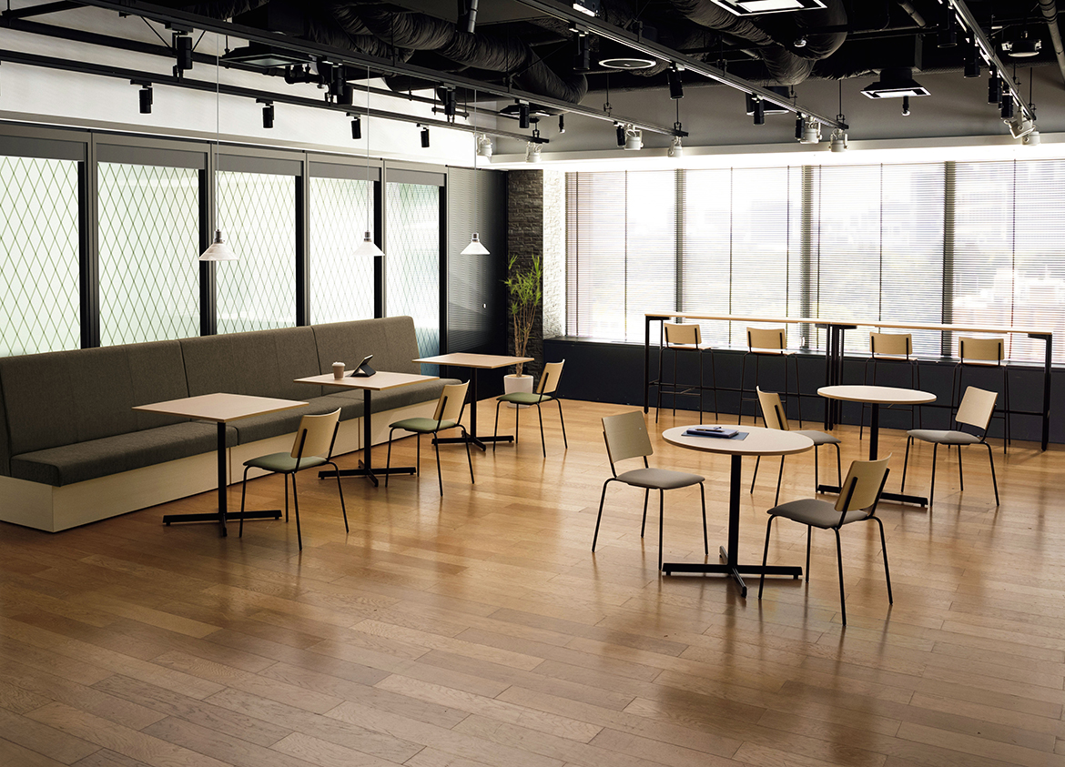 テーブルとチェアーを組み合わせて、気軽なカフェ空間に。