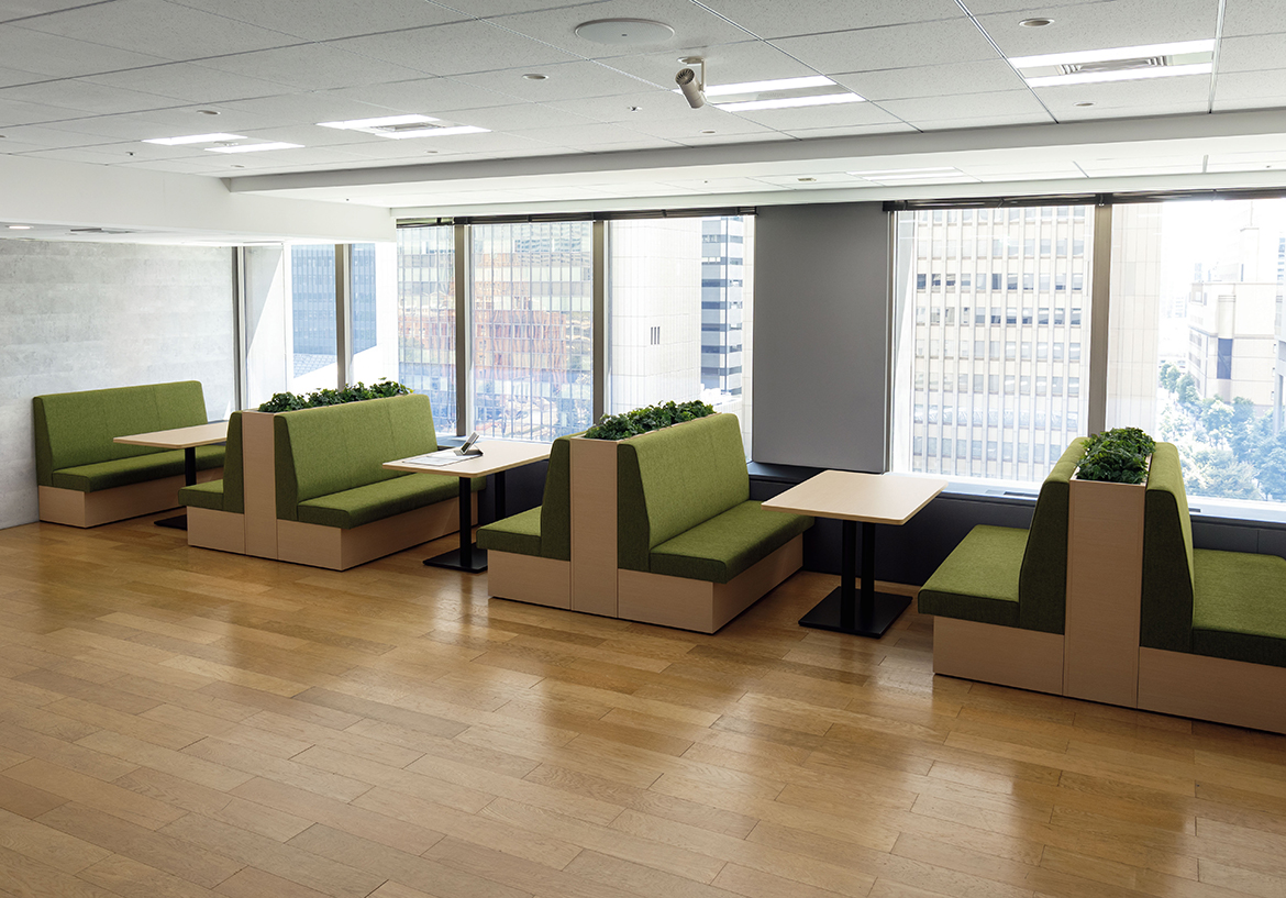 緊張感なく会話のできるL型配置や、多人数での集まりに適したコの字配置。