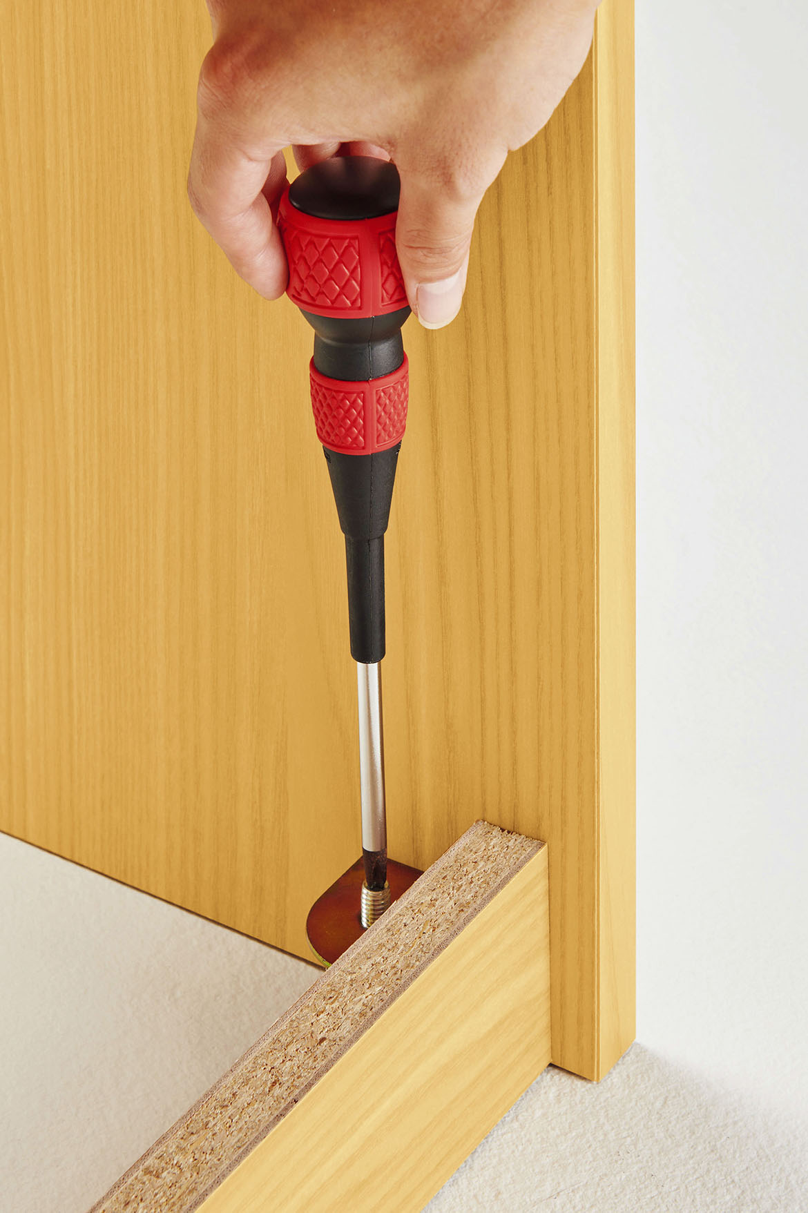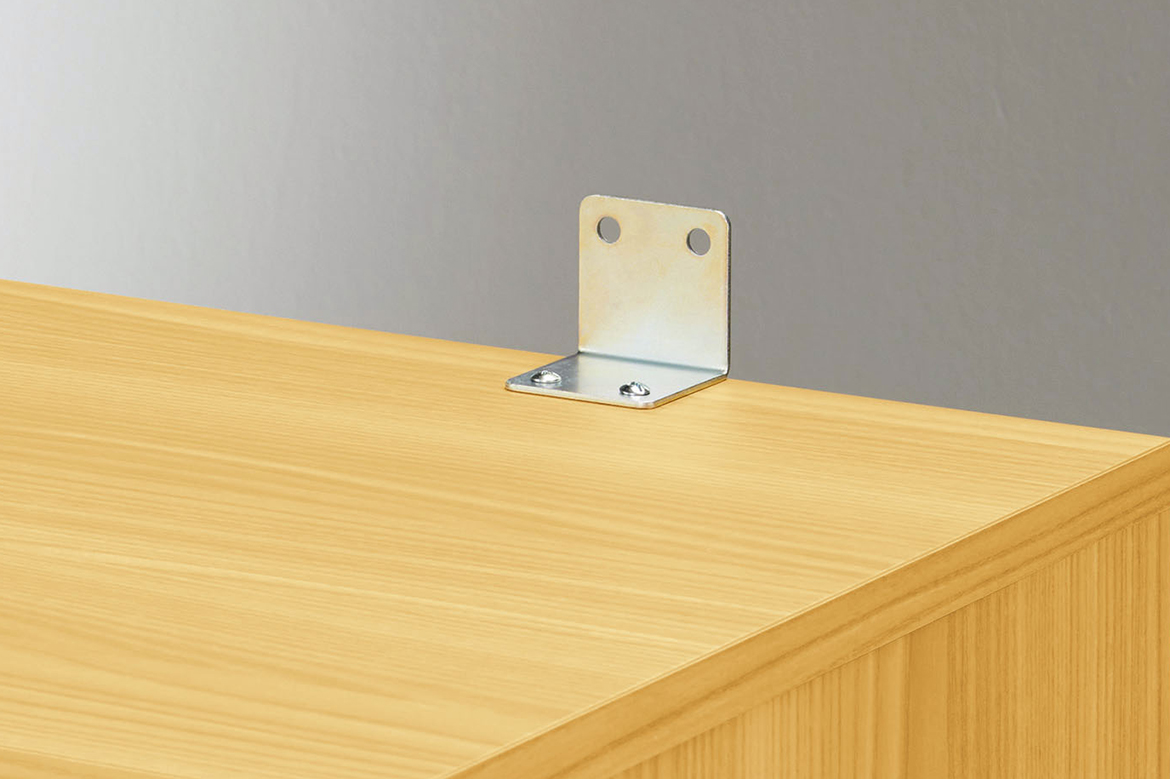 上段型の天板にL字の固定金具を取付け壁固定できます。