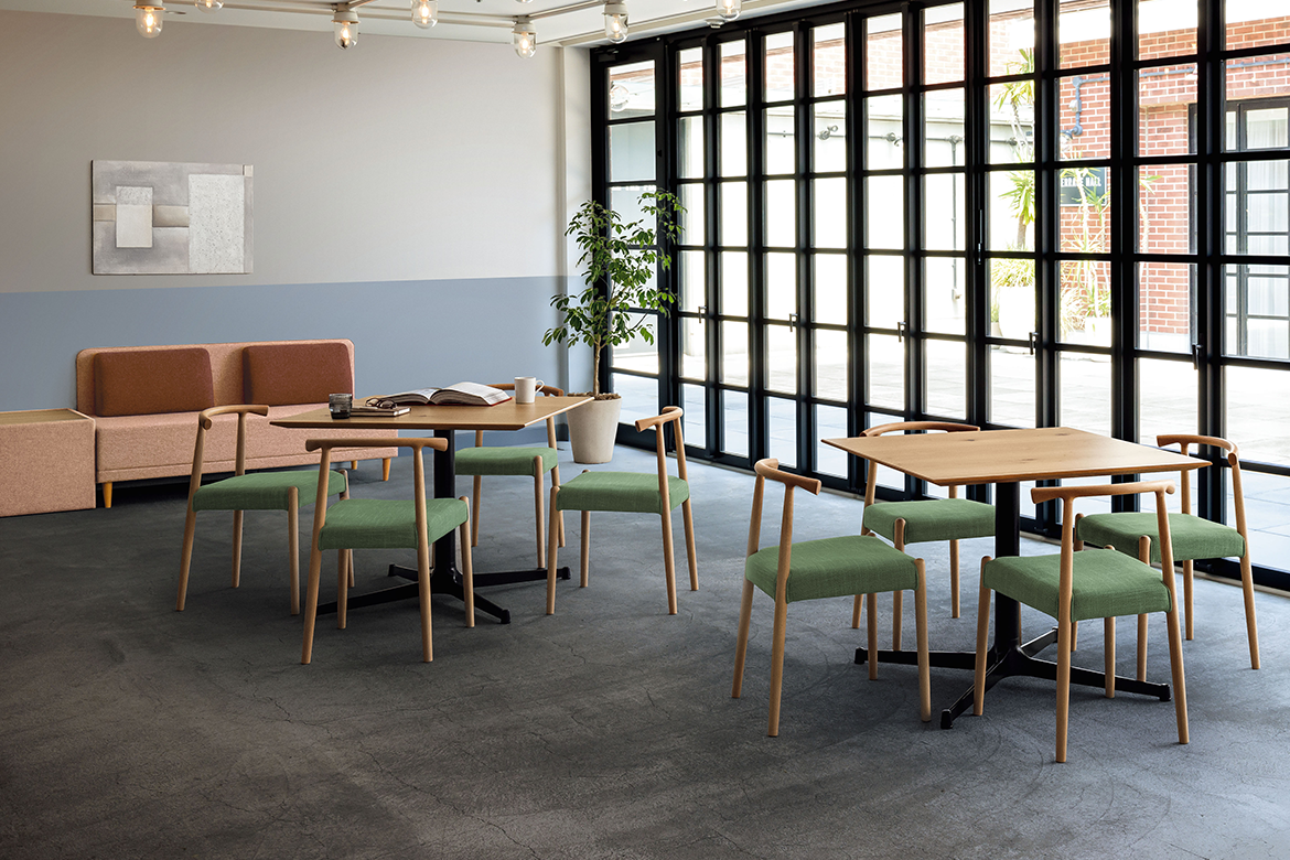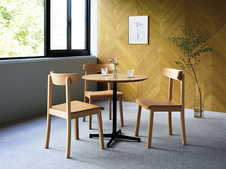 フレームラインの美しいチェアーが、心落ち着くつろぎの空間をつくります。
