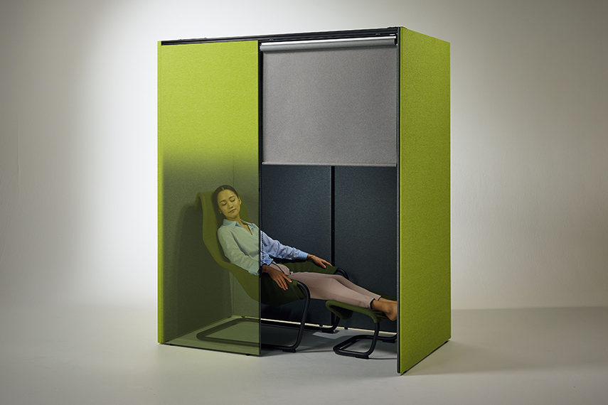 ラウンジ用チェアー〈ランティス〉と専用スクリーンを組合わせ、仮眠や休憩スペースとして使用できます。