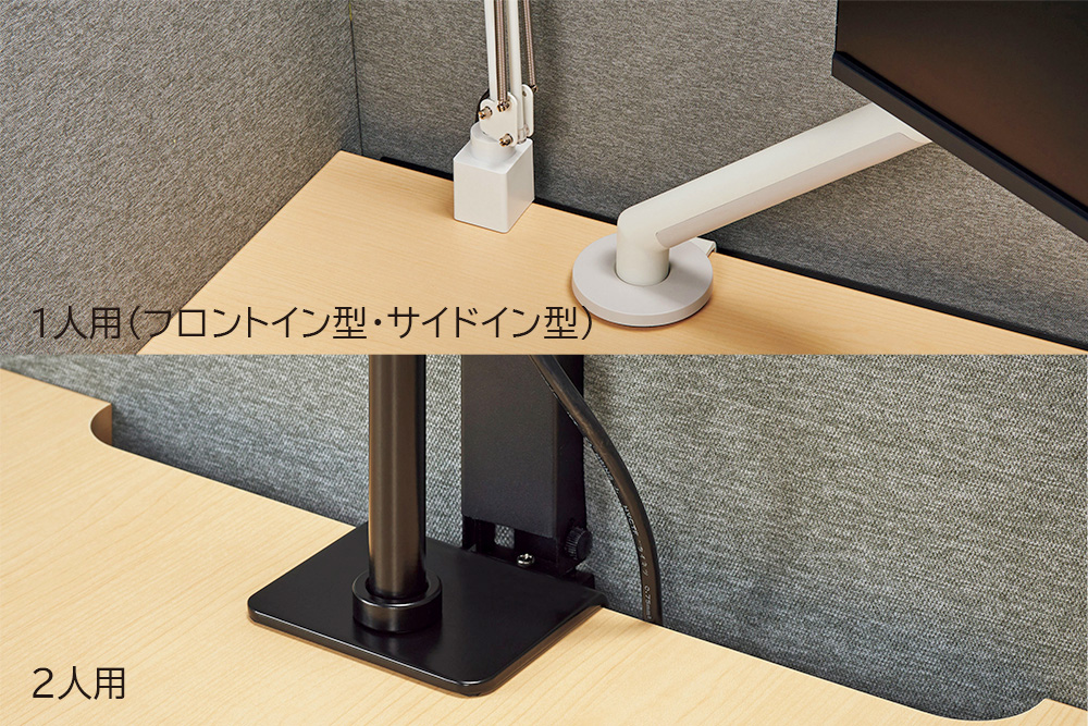 周囲の視線を気にせず、対面でのコミュニケーションが可能です。奥行き寸法が同じ「1人用(サイドイン型)」と並べて、すっきりとレイアウトできます。