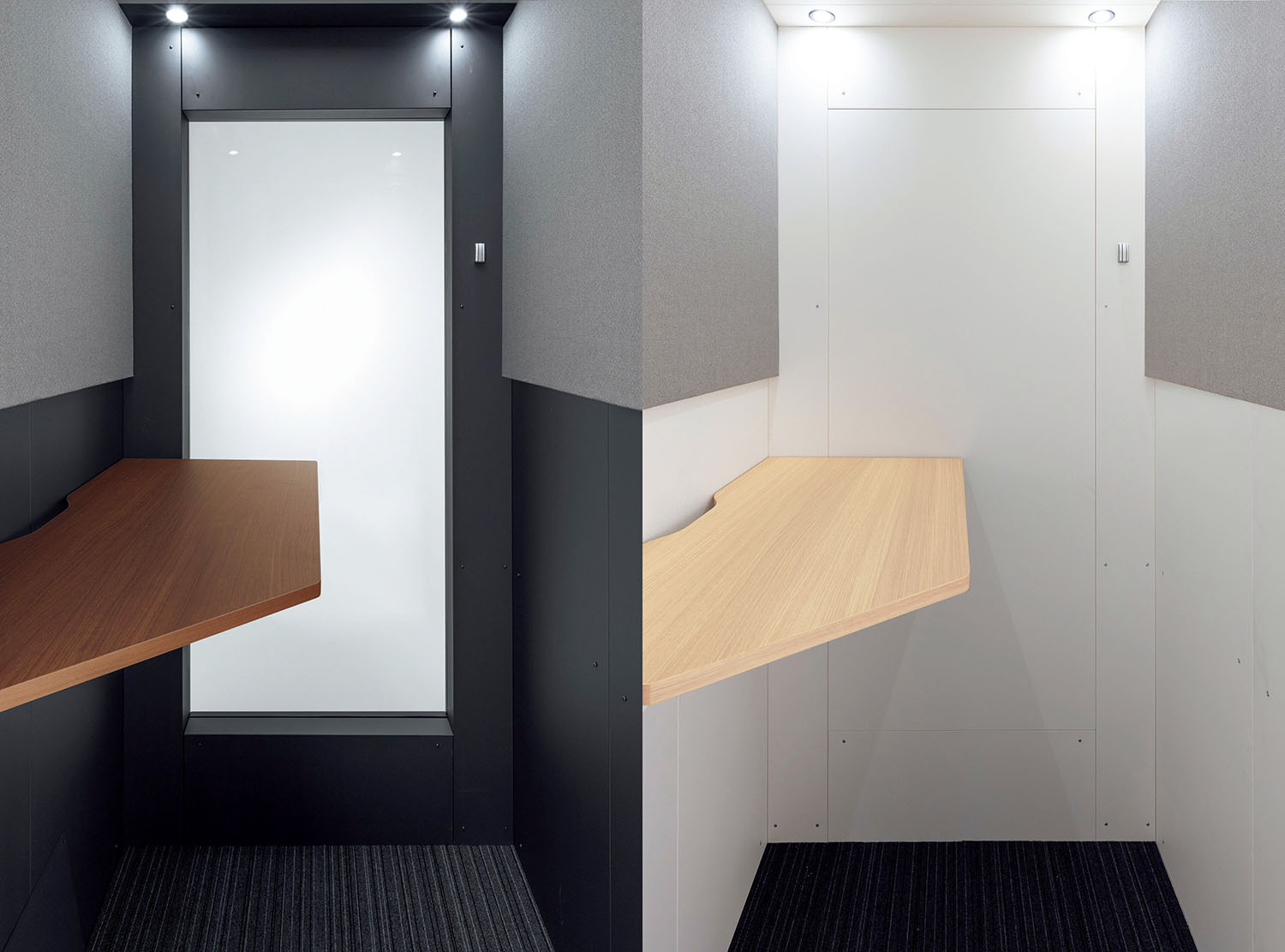 音漏れしにくい天井付タイプと適度な開放感がある天井なしタイプをラインアップ。