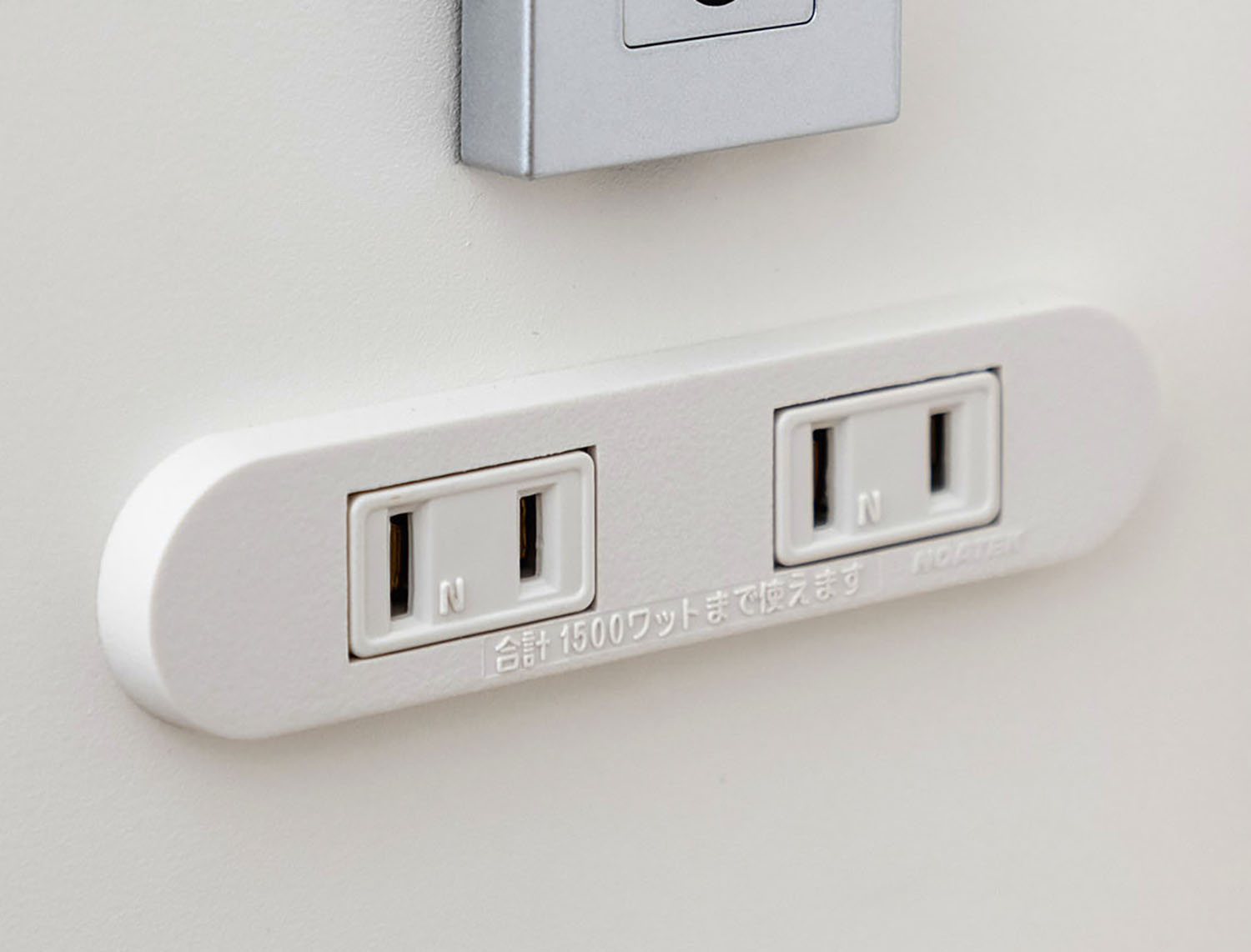 天板上の内壁に、モバイル機器などの充電に使用できる、100V・2口コンセントを設けています。