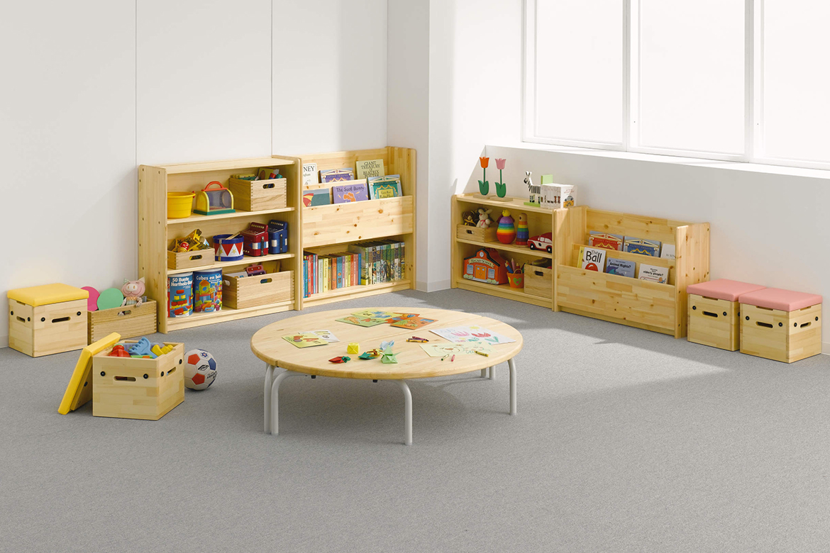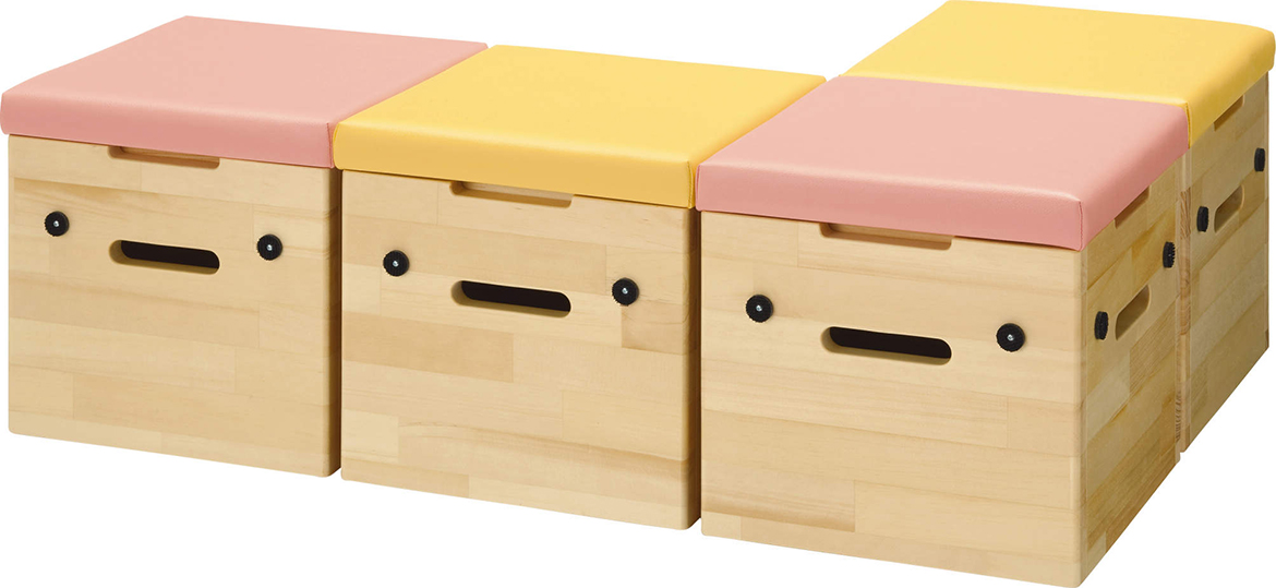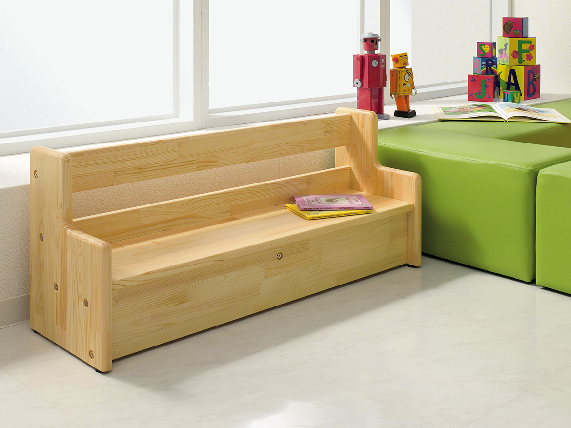年少児から座れる低めのベンチです。くつの履きかえや絵本コーナーなど多用途に使用できます。