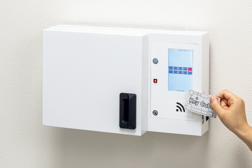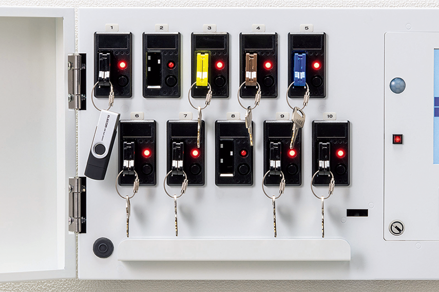 鍵管理機として必要不可欠な機能仕様をまとめた、ホルダー5個タイプの鍵管理機。管理プログラム不要で簡単運用。