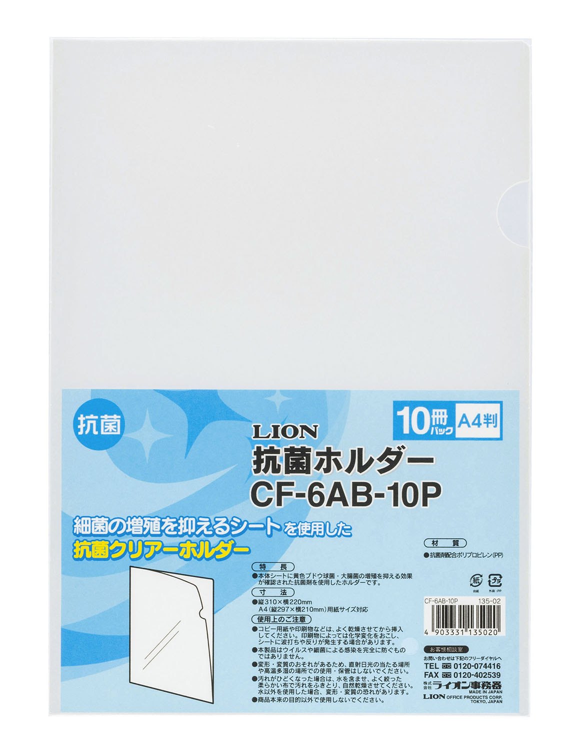細菌を抑えるシートを使用した抗菌クリアーホルダーです。