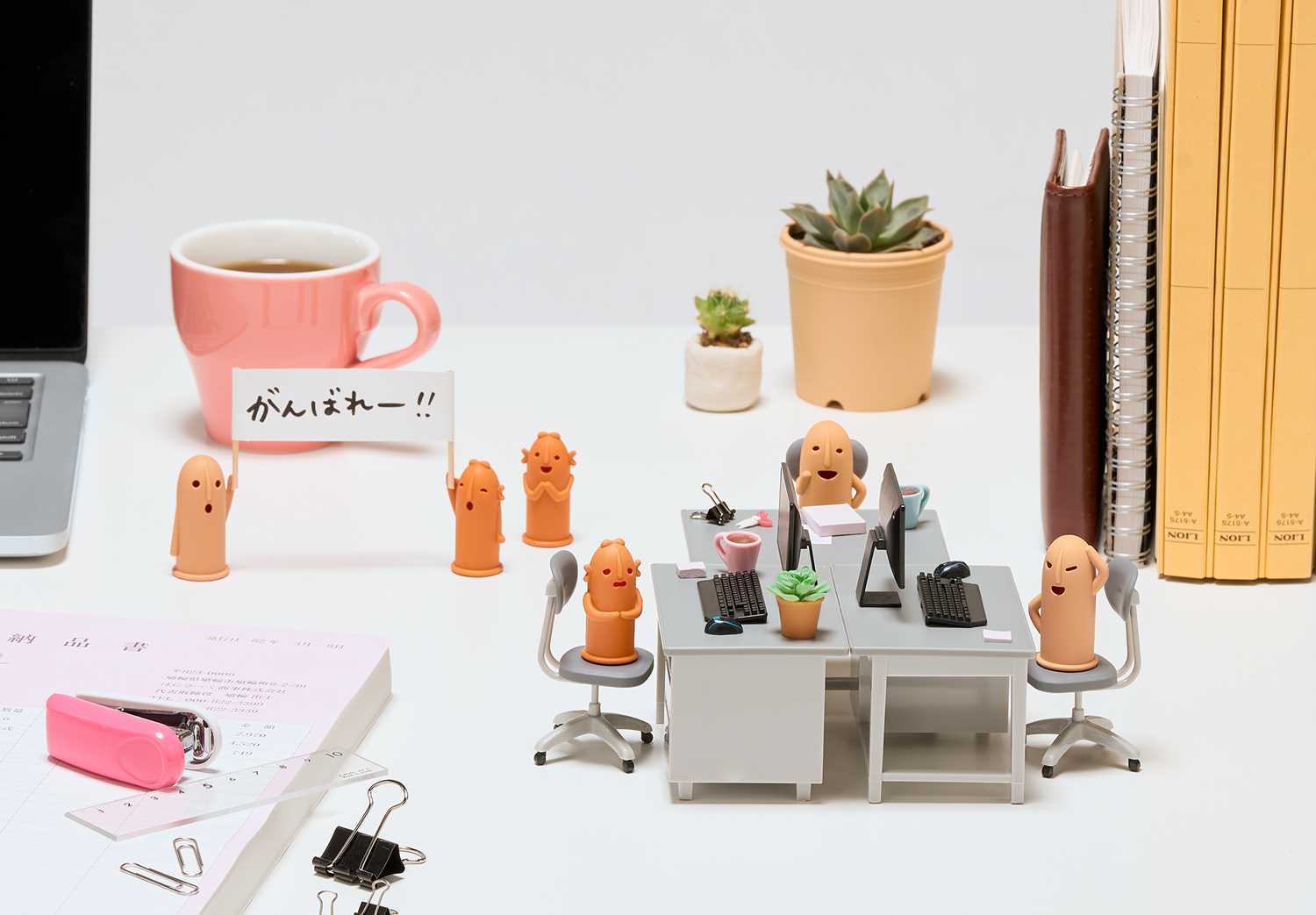 密かにファンの多い「はにわ」と、定番事務用品の一つである指サック、「よく見れば…似ているかも?」という発見から生まれたアイテムです。第3弾では、「応援・サポート」をテーマにした表情豊かなはにわたちが仲間入り!あなたの事務作業を賑やかにサポートします。