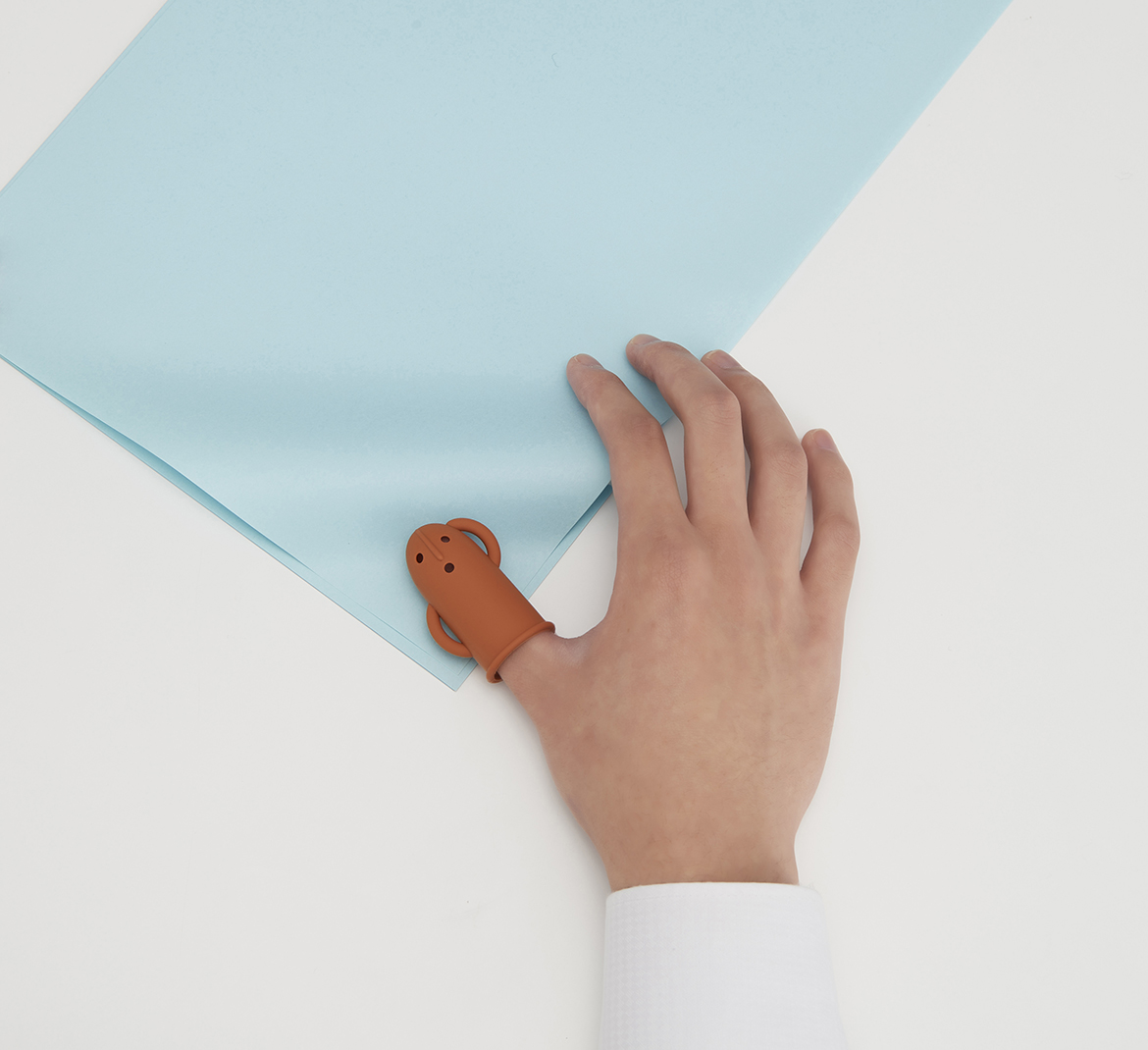 外れにくいキャップタイプで、内側はリブ状になっているため指に程よくフィットし、紙をめくっている途中で滑って回りにくい構造です。