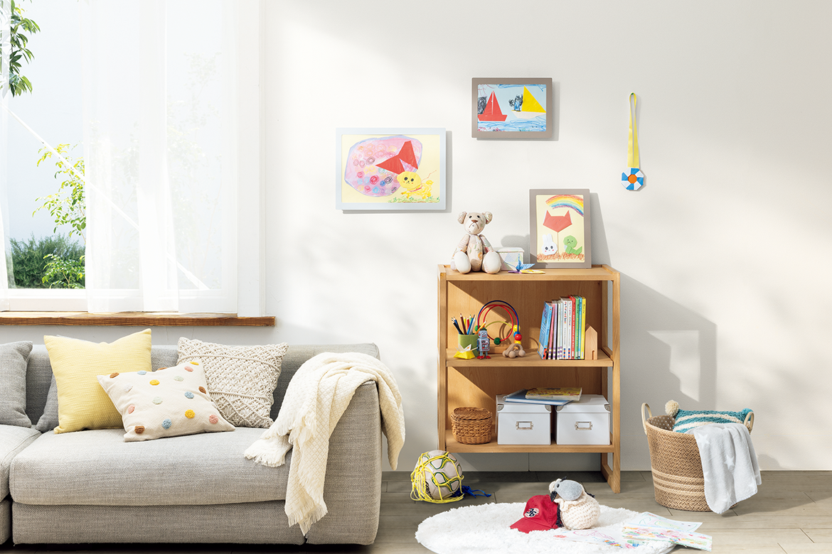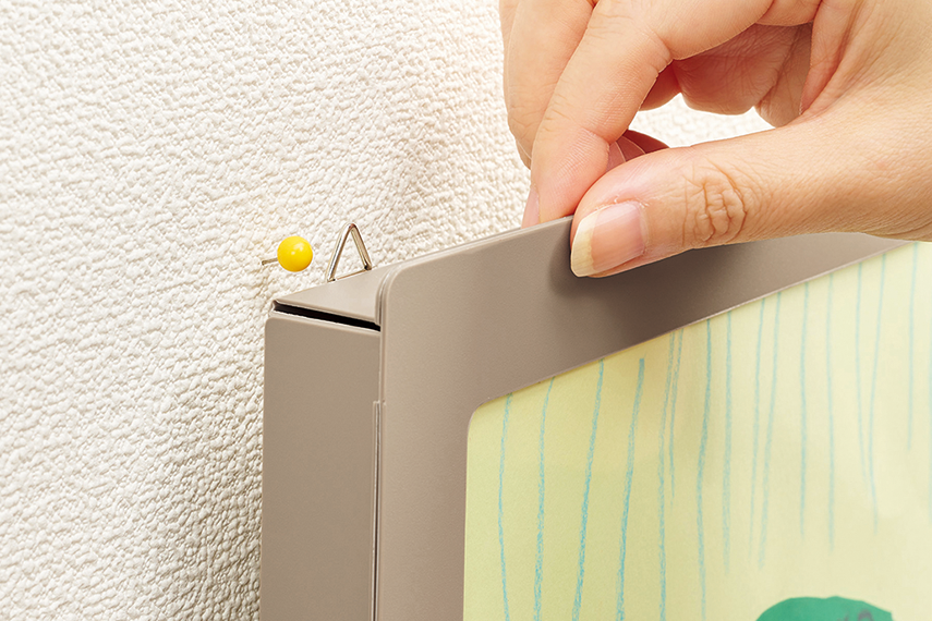 大切なお子様の作品や賞状などをすっきり収納できるホルダーです。フレーム付きの前面ポケットに作品をセットすれば、リビングや廊下などにもそのまま飾ることができます。