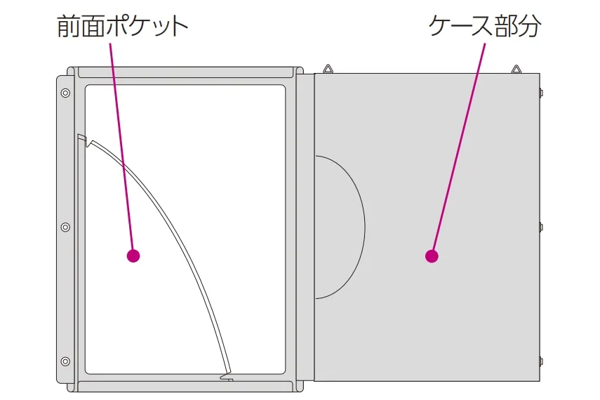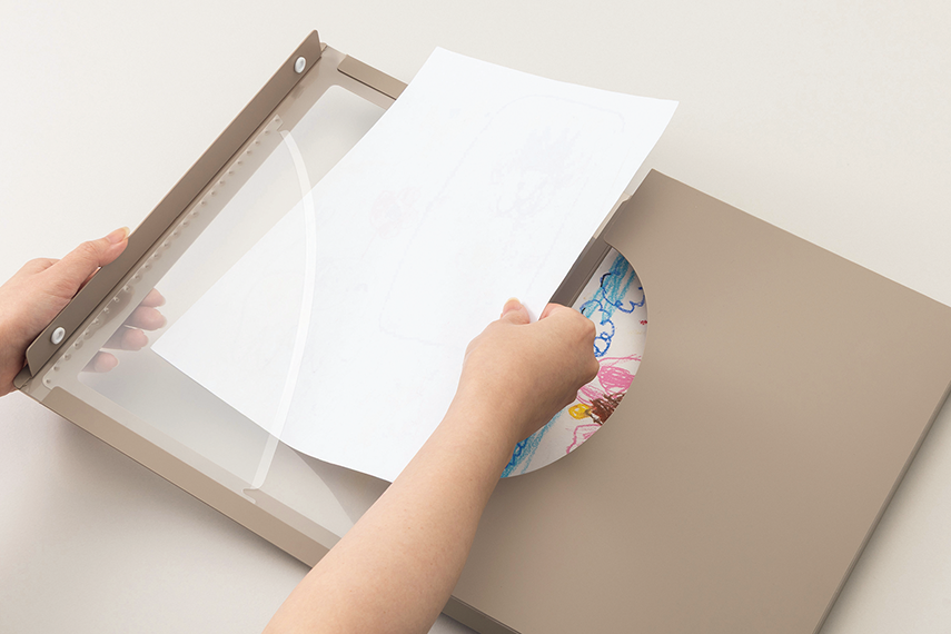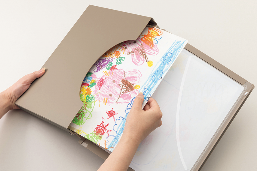 内側のケース部分には、学期・学年での作品をひとまとめに収納できます。