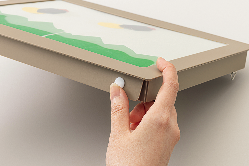 前面ポケットには、お気に入りの作品を収納して飾ることができます。