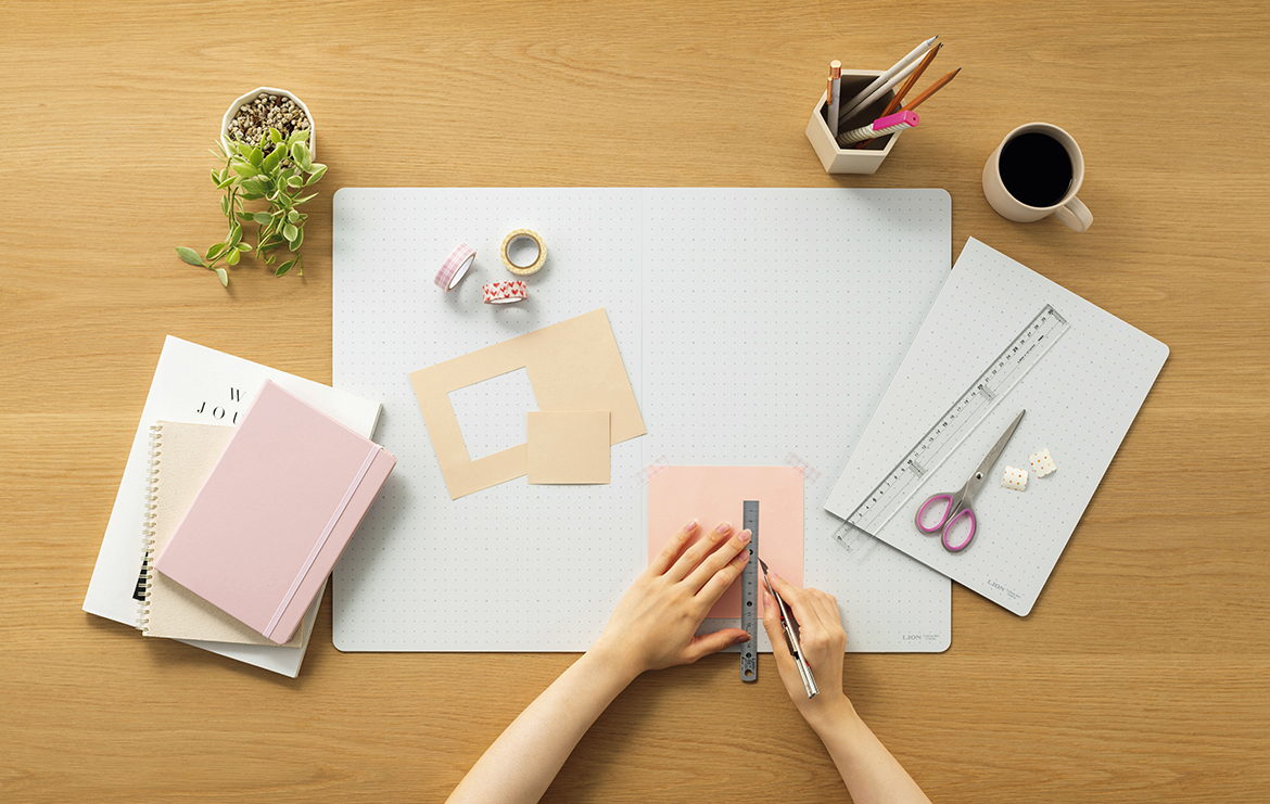 半分に折りたためるので、限られたスペースでも使用できます。開くスペースがない場合には折りたたんだままでもカッティング作業ができ、収納時も省スペースです。