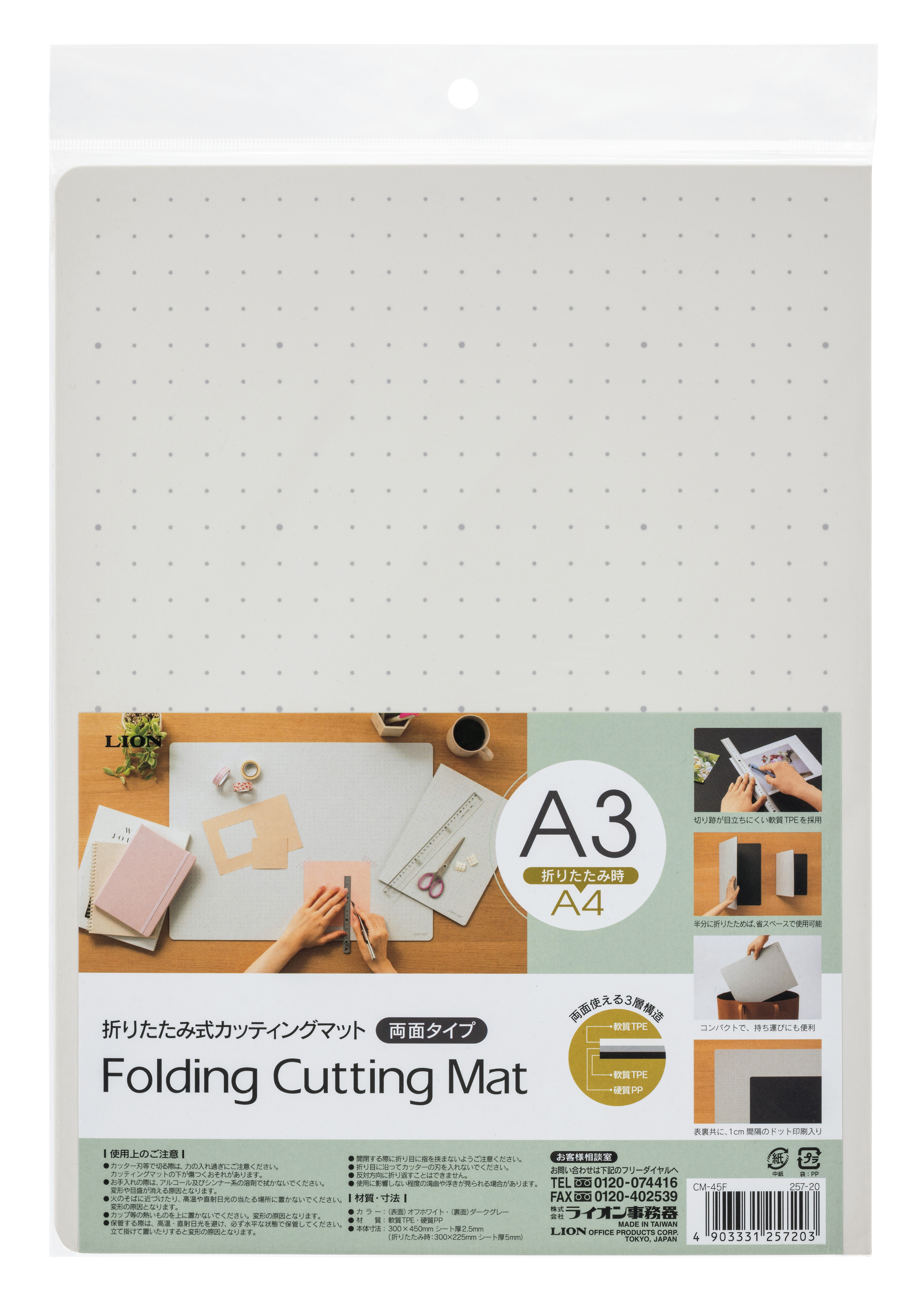 半分のサイズに折りたたむことができるカッティングマットです。