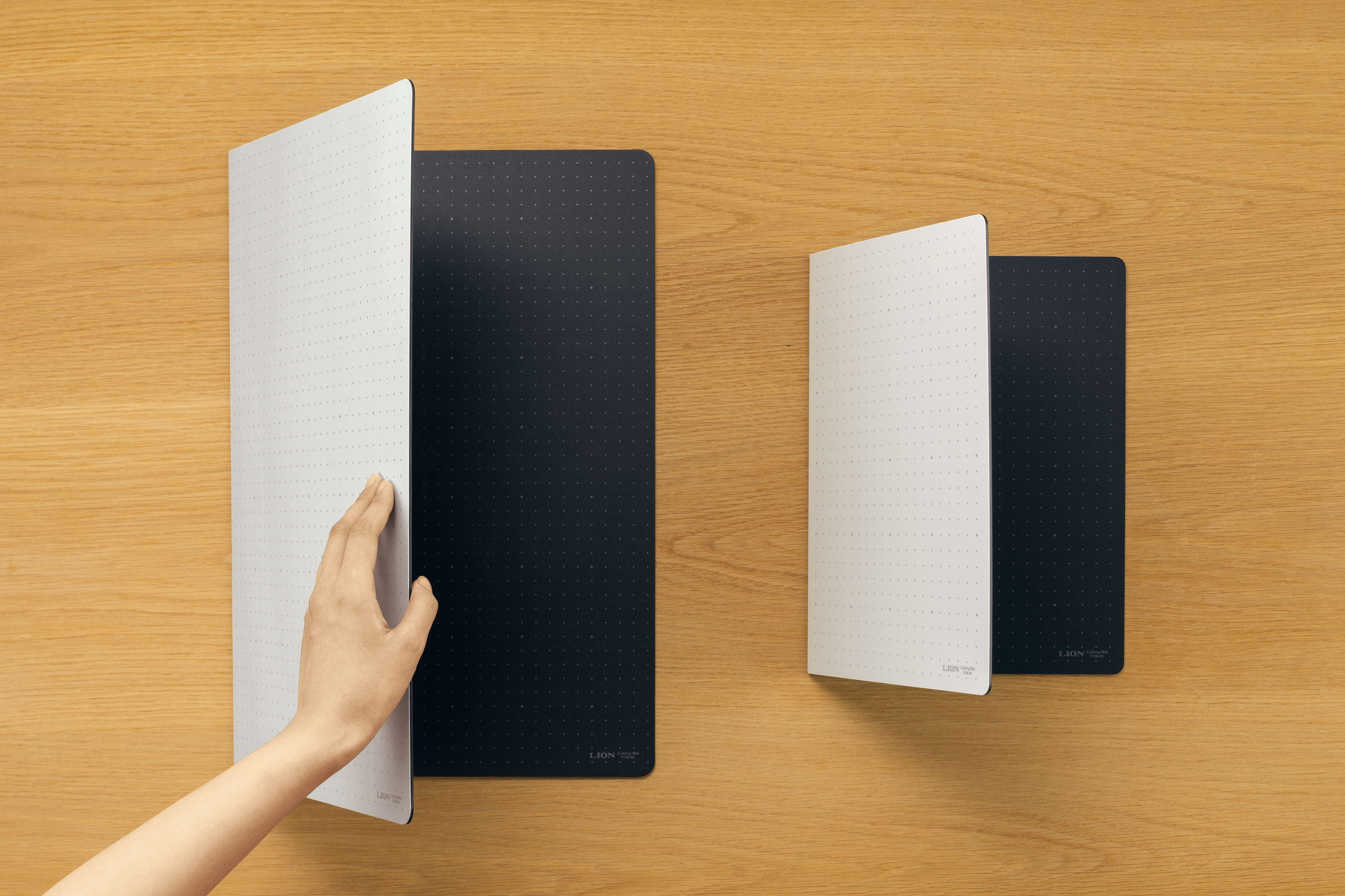 A3サイズのCM-45Fは、折りたたむとA4サイズになります。書類と一緒に持ち運んだり、本棚などにも収納しやすいサイズです。