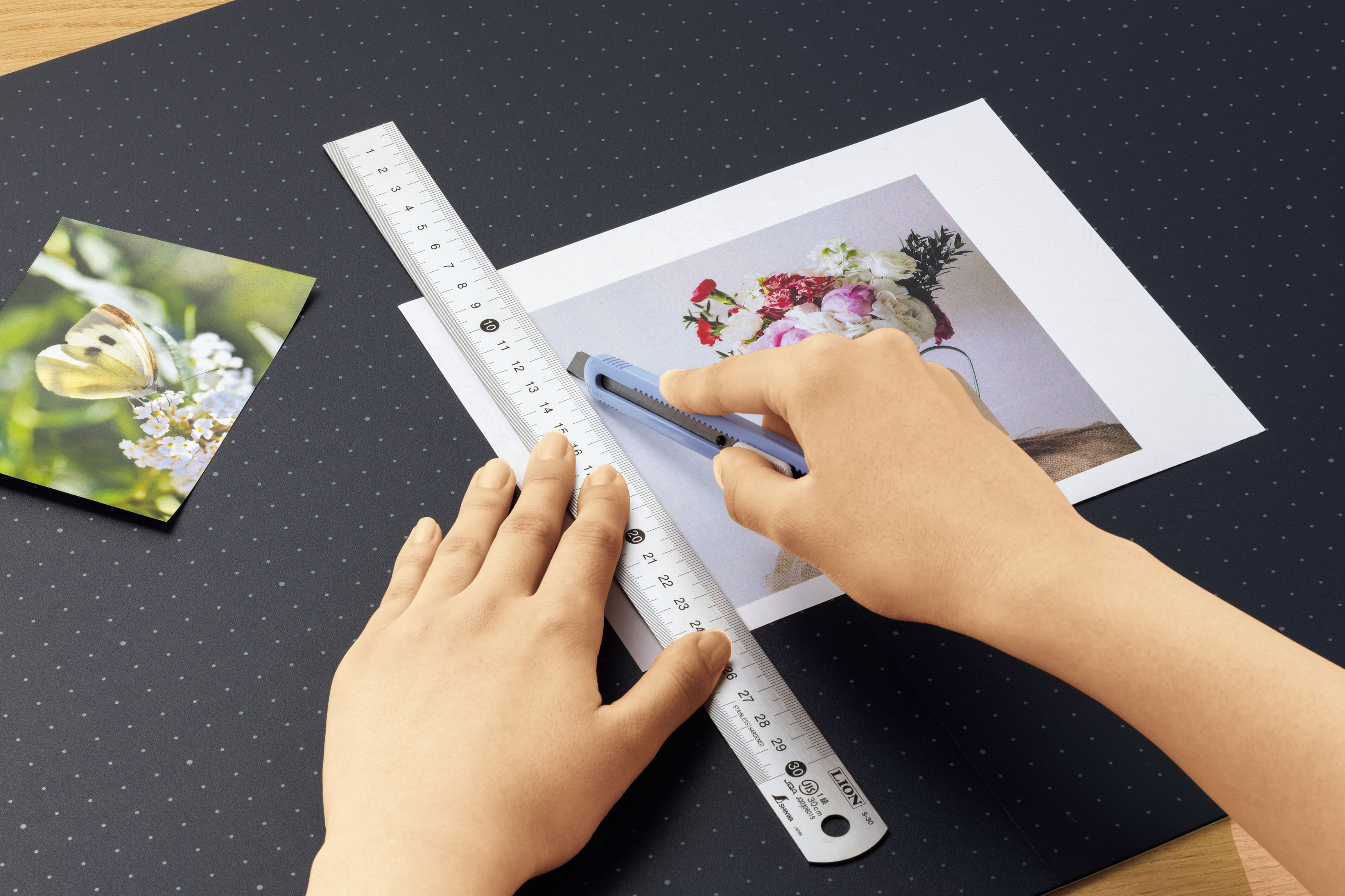 表裏ともに1cm間隔のドットを印刷しており、カット作業をする際の目安になります。