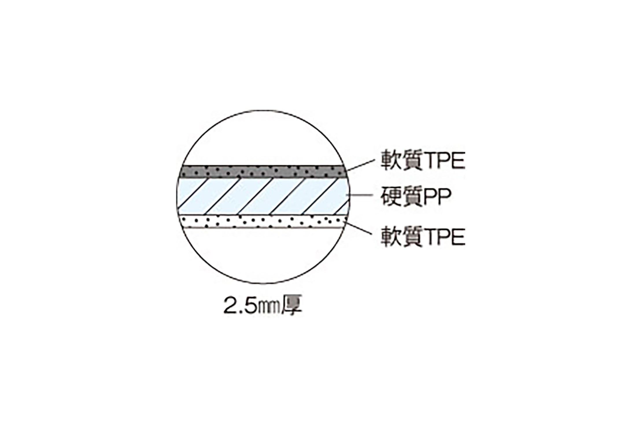 カット面には切り跡が目立ちにくい軟質TPEを採用しています。