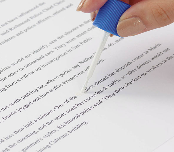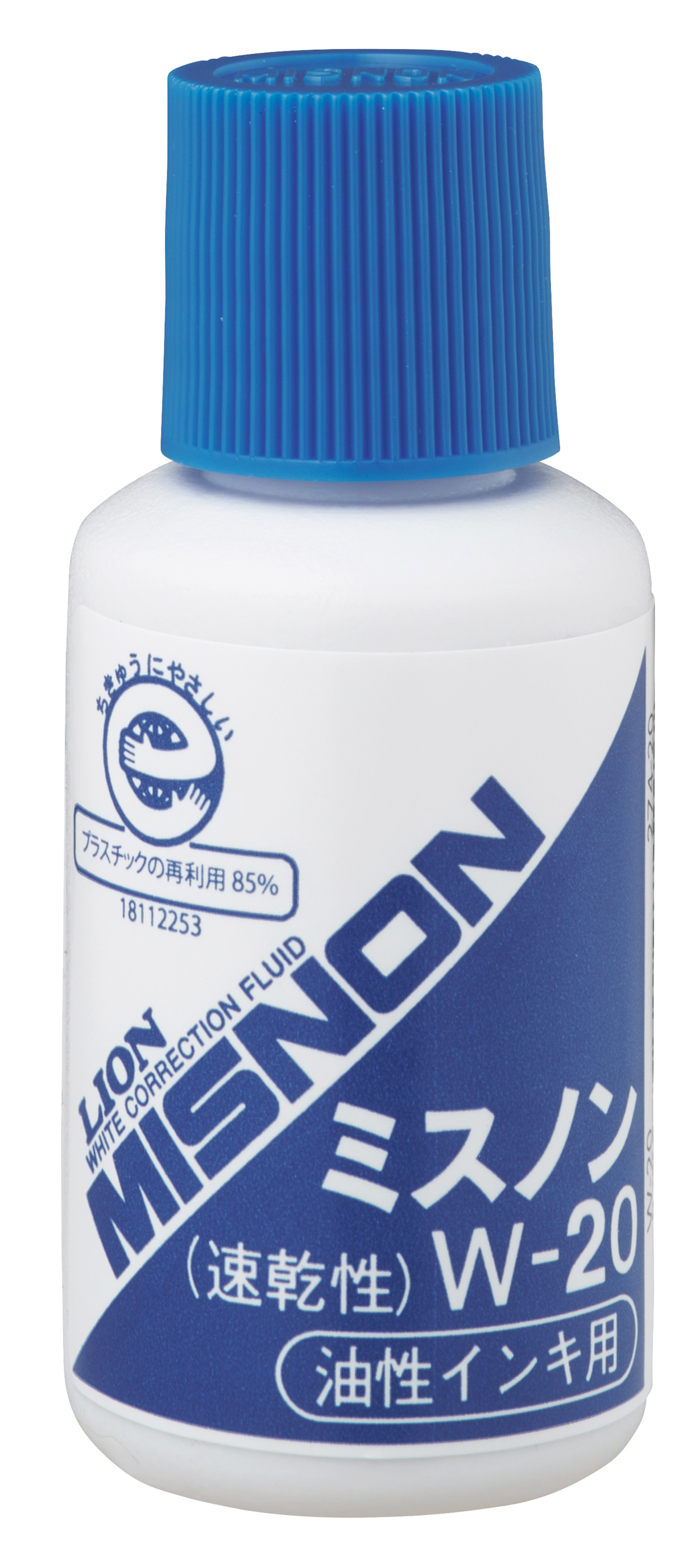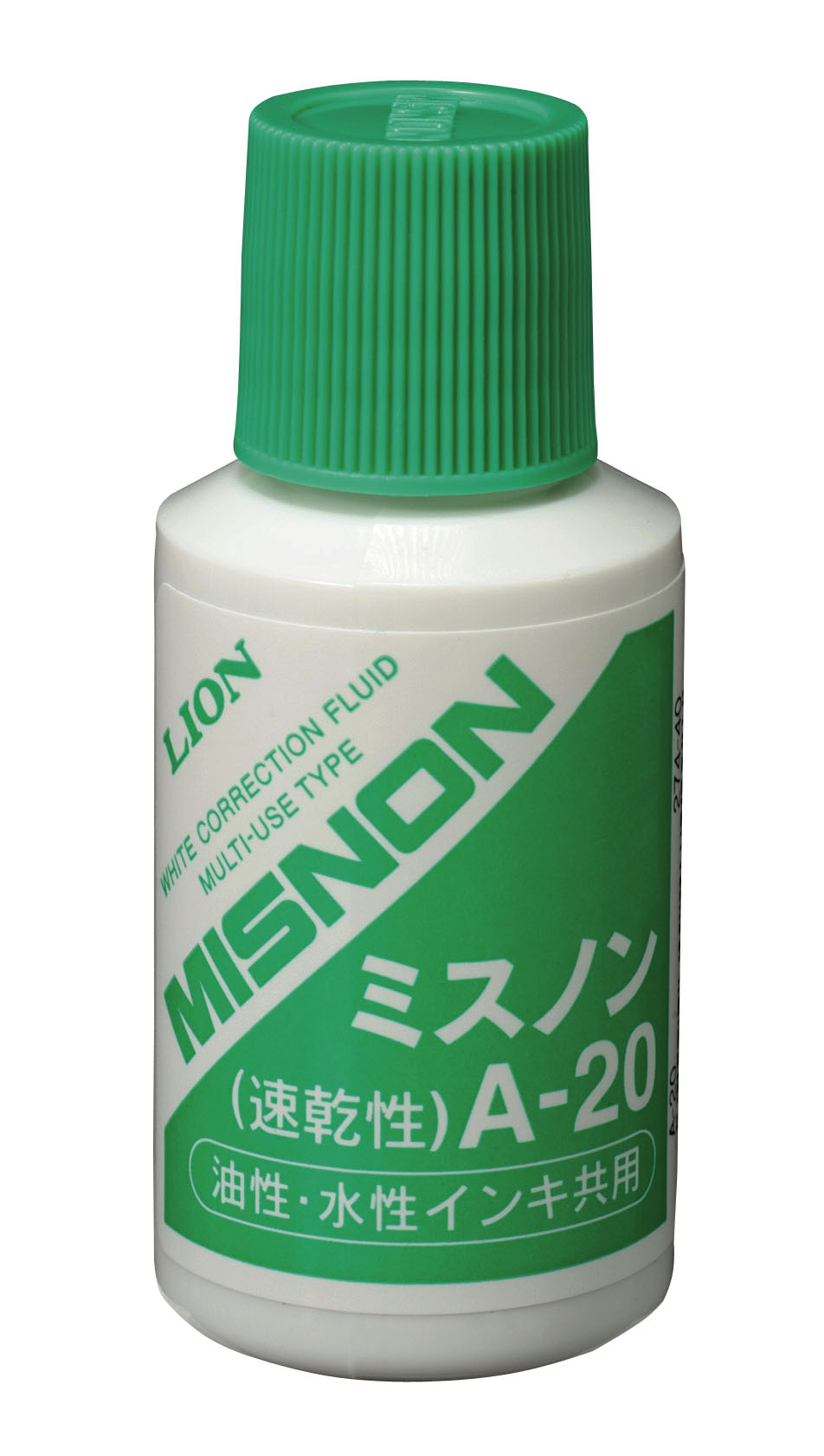 油性・水性インキ用の速乾性ホワイト修正液です。修正液が乾いた後、上から文字や線を書くことができます。