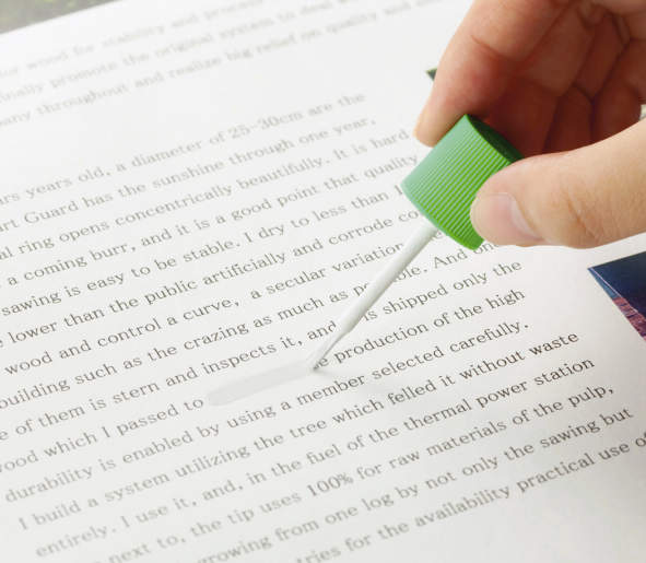油性インキで書かれた文字用の速乾性ホワイト修正液です。修正液が乾いた後、上から文字や線を書くことができます。水で薄めることができます。