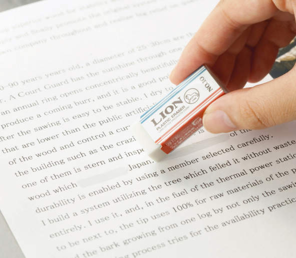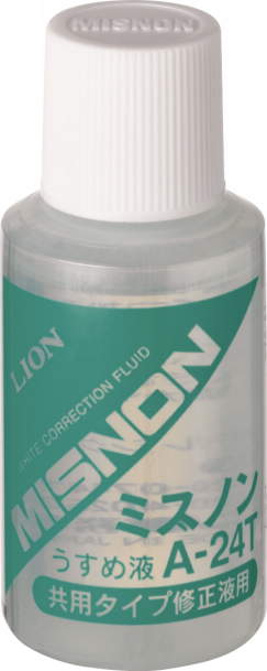 修正液が乾いた後、修正箇所を消ゴムで取り除くことができます。薄める時は専用うすめ液のA-24Tをご使用ください。