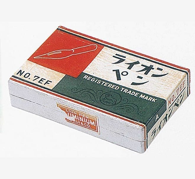 明治時代となり、使われる文具が筆・墨から鉛筆・ペン・インキと移り変わっていきました。時代の変化に合わせて欧米の文具や製図器を取り扱うようになり、輸入品の中に描かれていた動物のライオンをモチーフにしたマークをヒントに、「強く、丈夫で信頼がある」商品の証としてデザインしたマークを商標としました。