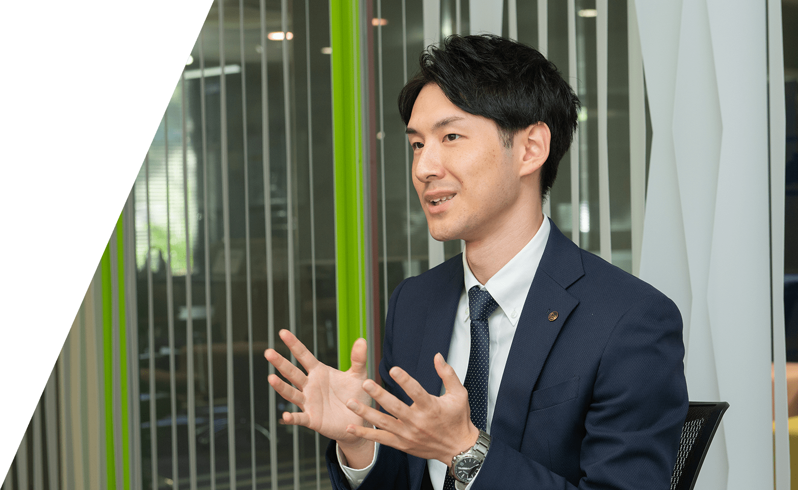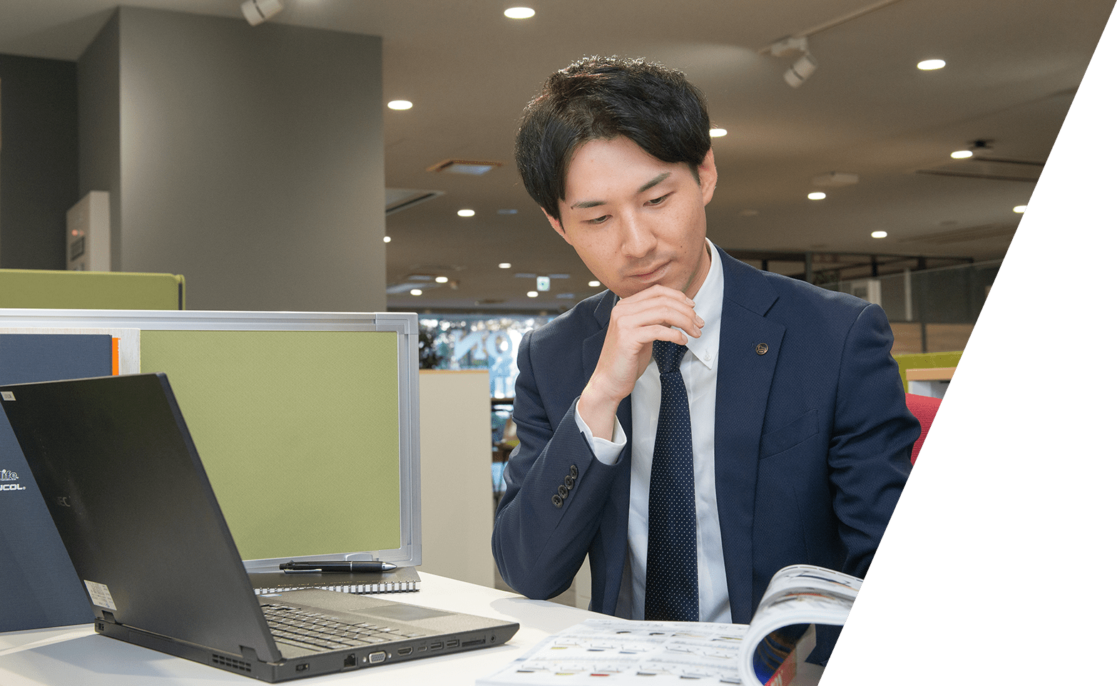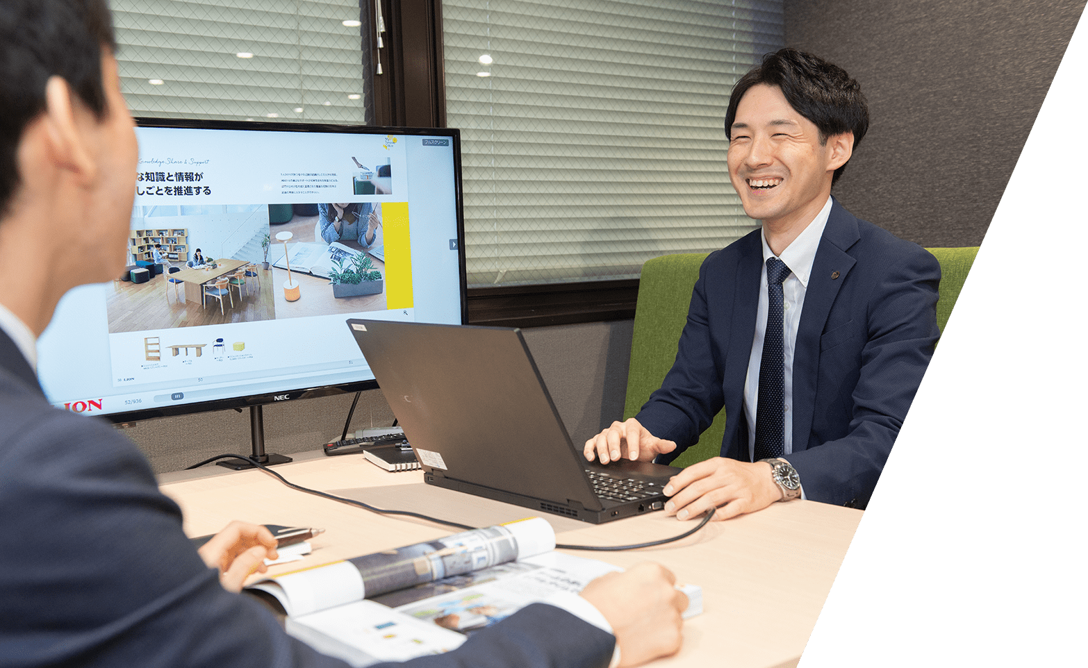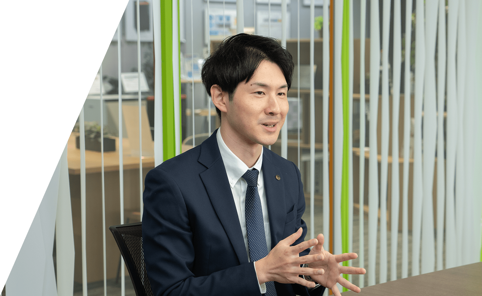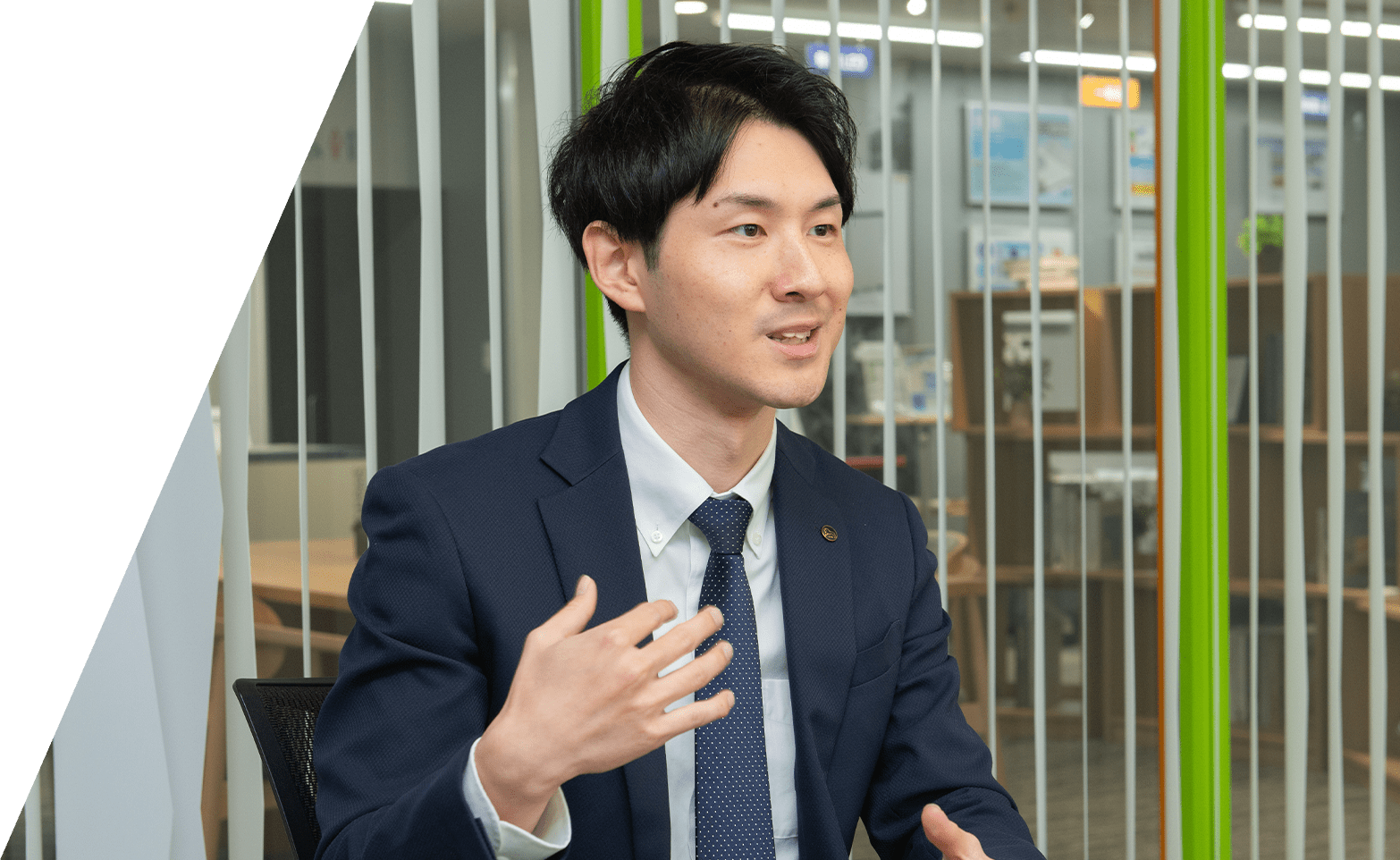 ライオン事務器にエントリーしたのも事務用品を扱う会社だと聞いたのがきっかけだったのですが、企業研究を進めるうちに、文具からオフィス家具、ICT機器まで、手がける商材の豊富さに驚きました。また、ユニバーサルデザインの考え方を商品に取り入れている点にも心惹かれました。この会社なら、年代や性別問わず、より多くの人に役立つものづくりができるのではないかと考え、入社を決めました。