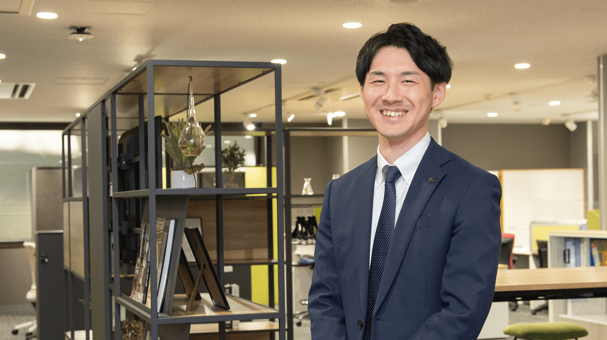 これまで開発したものの中で思い出深いのは、2年目に担当したオフィス用のオープンシェルフです。木目調の板を採用したことにより、カフェのようなおしゃれ空間を演出できると好評いただき、同じ風合いを採用したミーティングテーブルやカウンターテーブルにラインナップを広げ、シリーズ化することができました。頭の中のアイディアが形になると嬉しいですし、お客様に実際に使っていただけたときには喜びを感じます。商品開発は楽なことばかりではありませんが、苦労した時間が長ければ長いほど味わえる達成感も大きく、この仕事をやっていてよかったと心から思います。