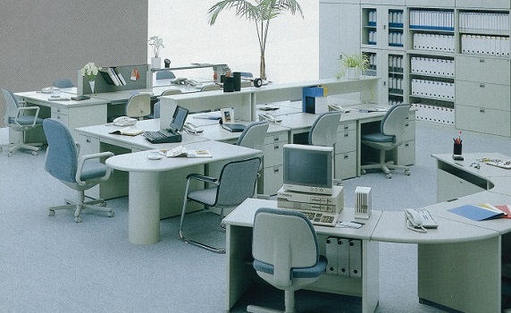 インターネットの普及により、手作業だった事務処理がパソコンへと移行。以後、会社以外の場所で仕事をしたり、フリーアドレスを導入する企業が増加。