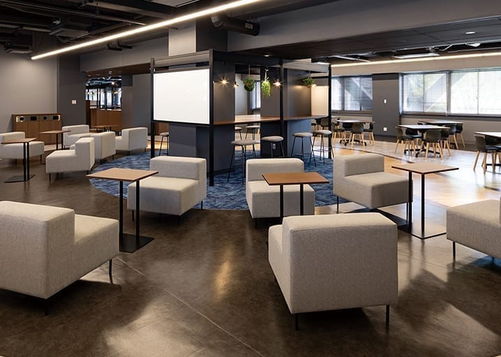 当社ではお客様のご要望やお困りごとに寄り添った空間の提案から運用まで、ワンストップで支援。人の導線を考慮した快適で過ごしやすいオフィスはもちろん、照明や空調にまでこだわりながら、より創造力を掻き立てるような空間デザインをお届けしています。