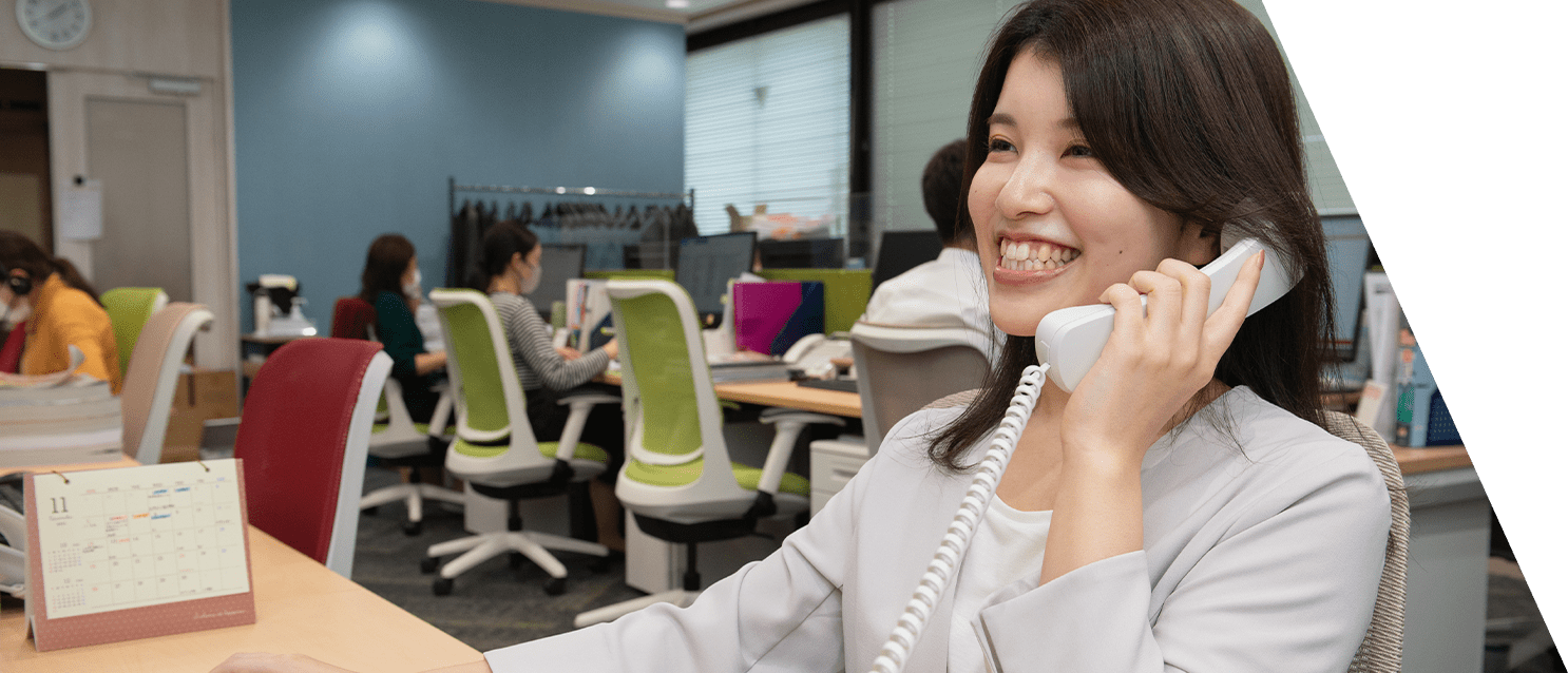 お客様からの悩みや相談について、商品・販売・サポートといった専門的な知識を持って対応します。